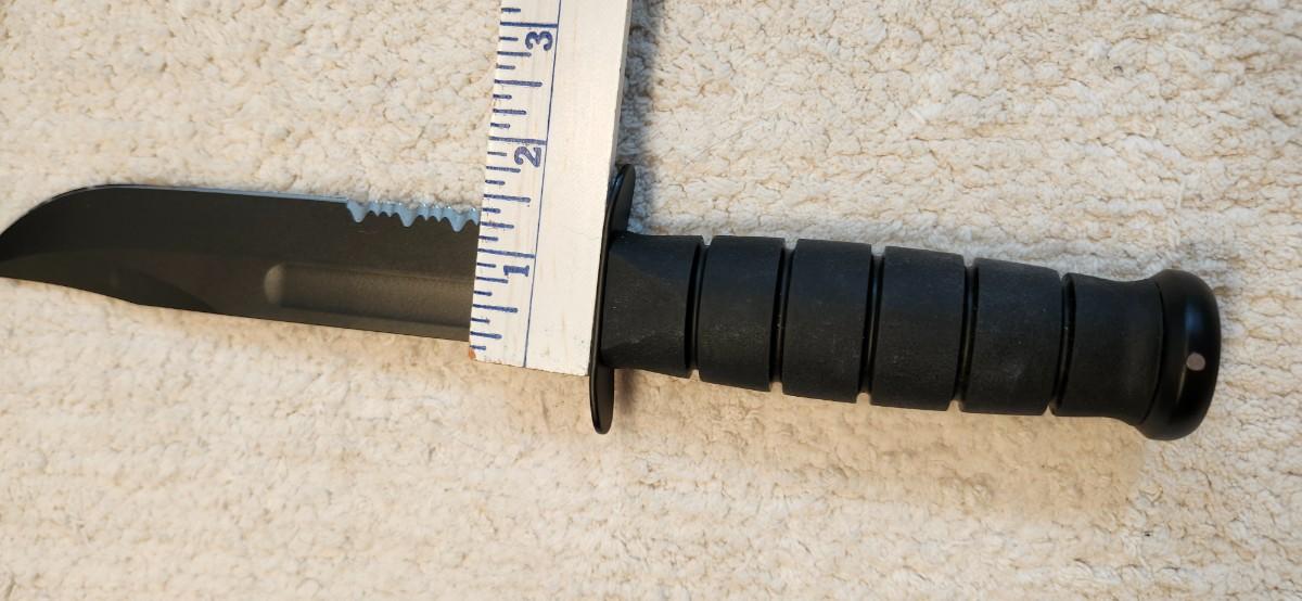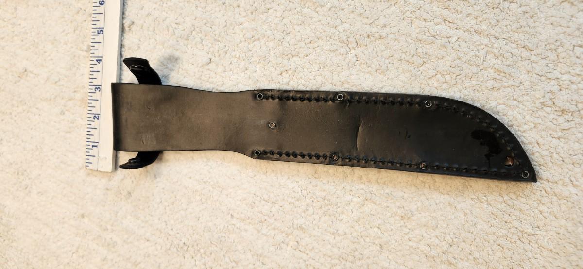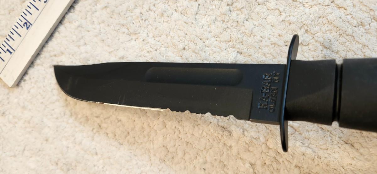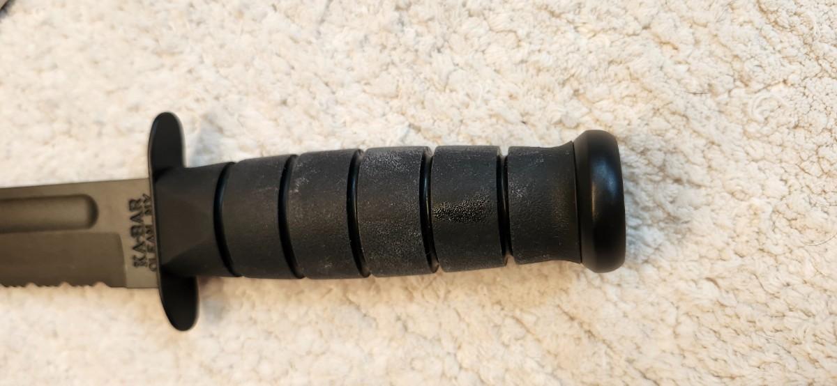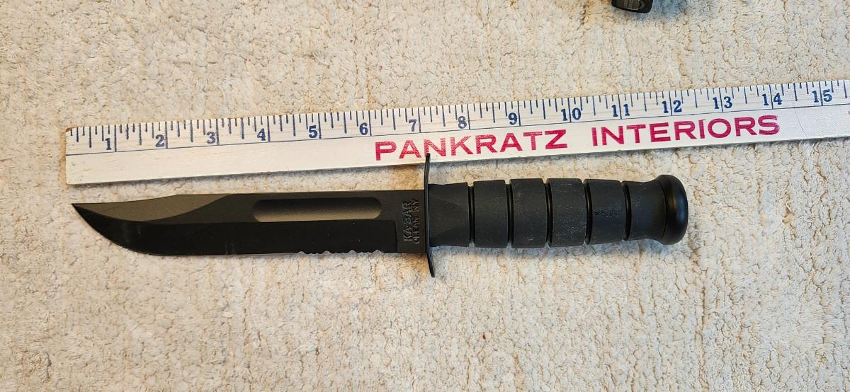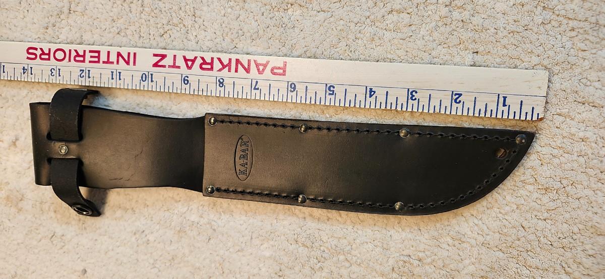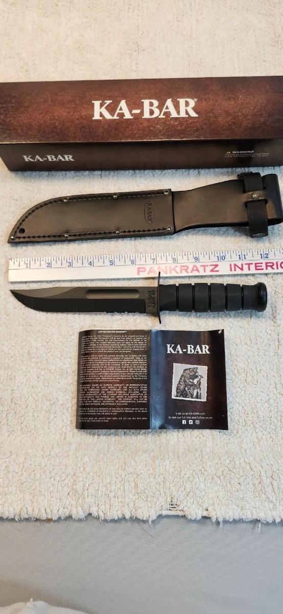 KA-BAR 1211 Full Size Fighting Knife 7" Black Plain Blade, Kraton G Handle, Leather Sheath
