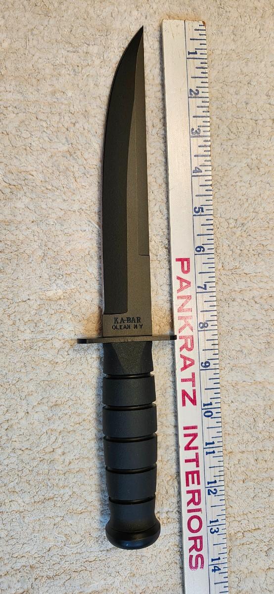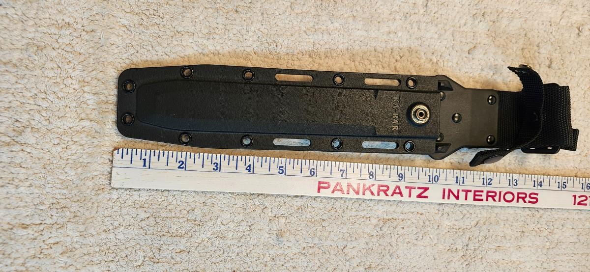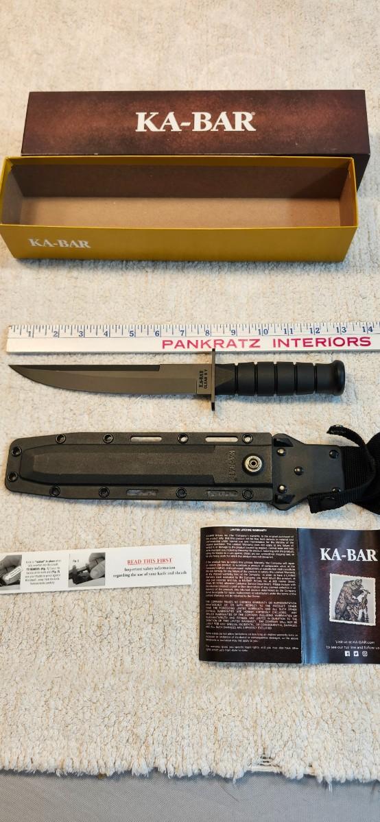 KA-BAR 1266 Modified Tanto Fixed Blade Knife 8" Black Blade, Black Kraton G Handles, Black GFN Sheath