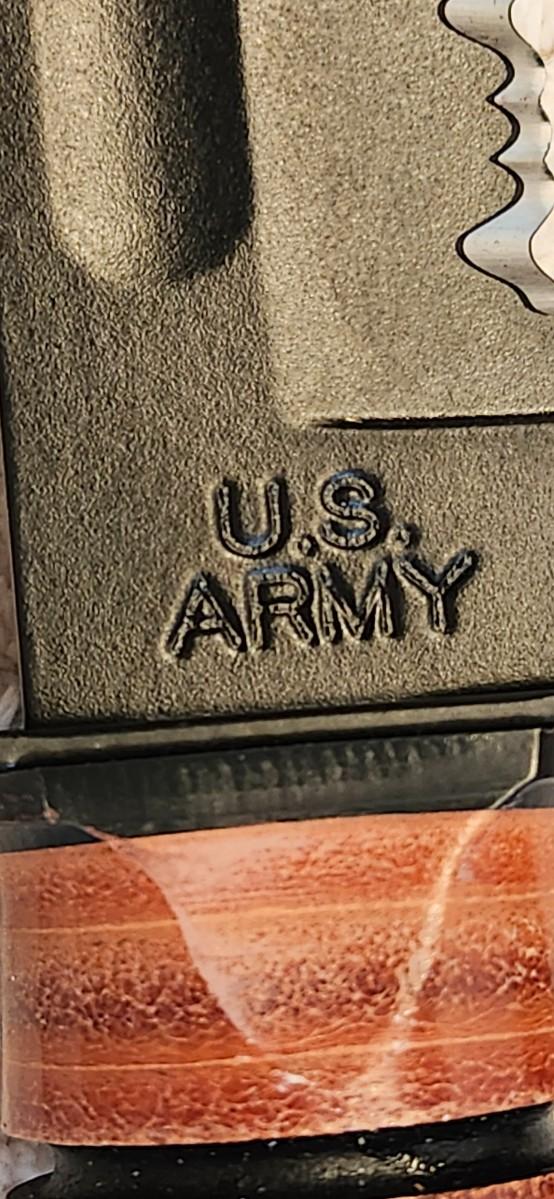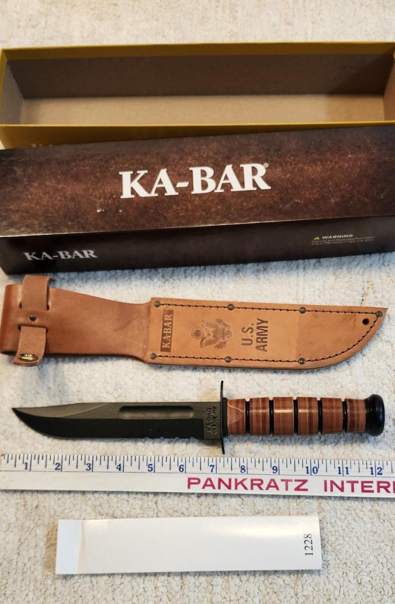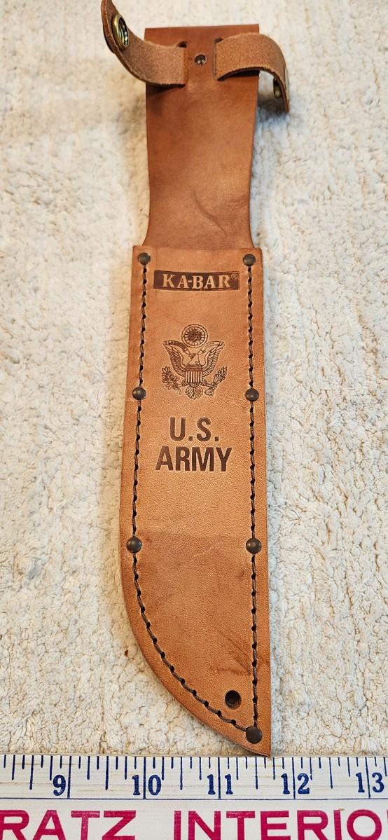 The traditional KA-BAR marked for Army personnel. Blade features U.S. ARMY tang stamp. Leather sheath included.