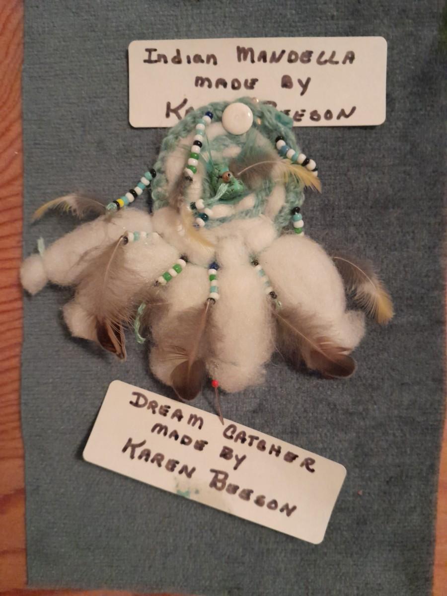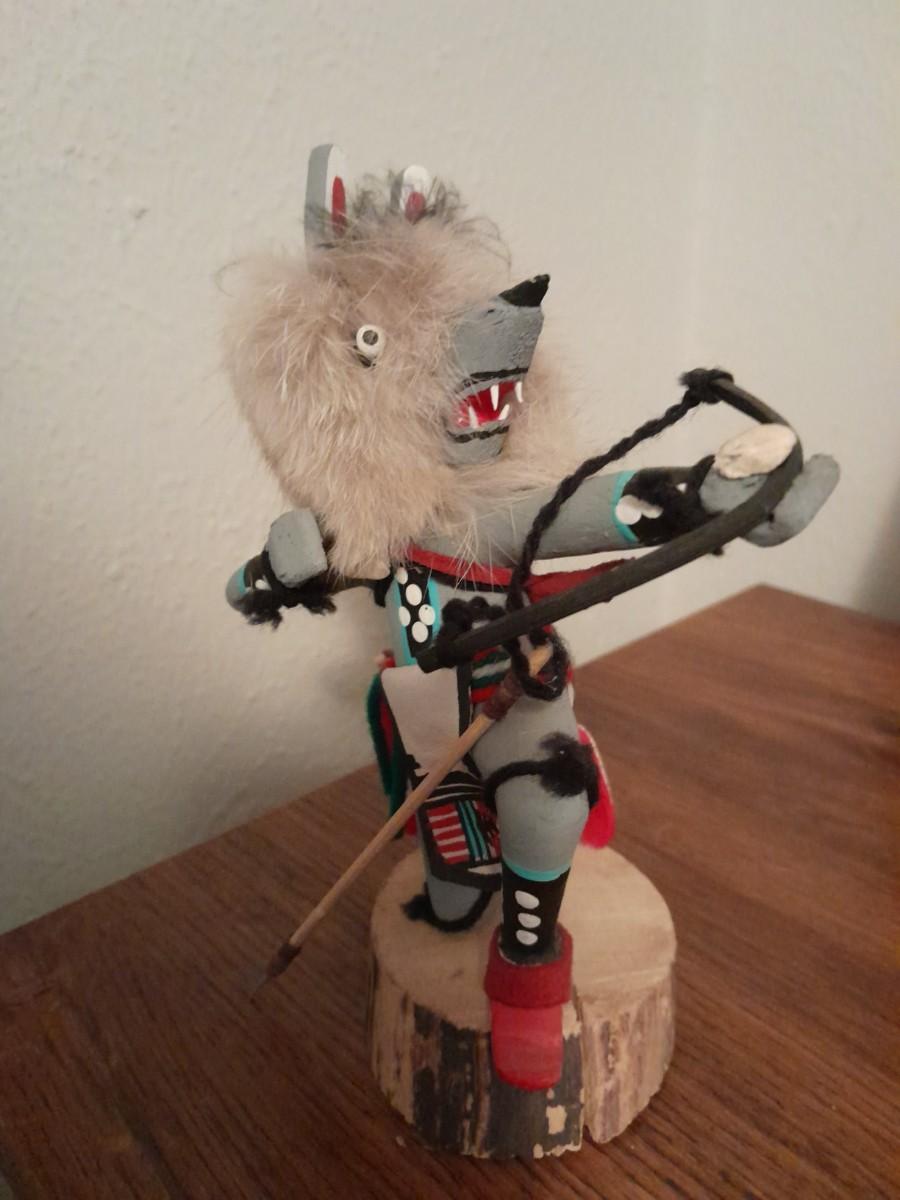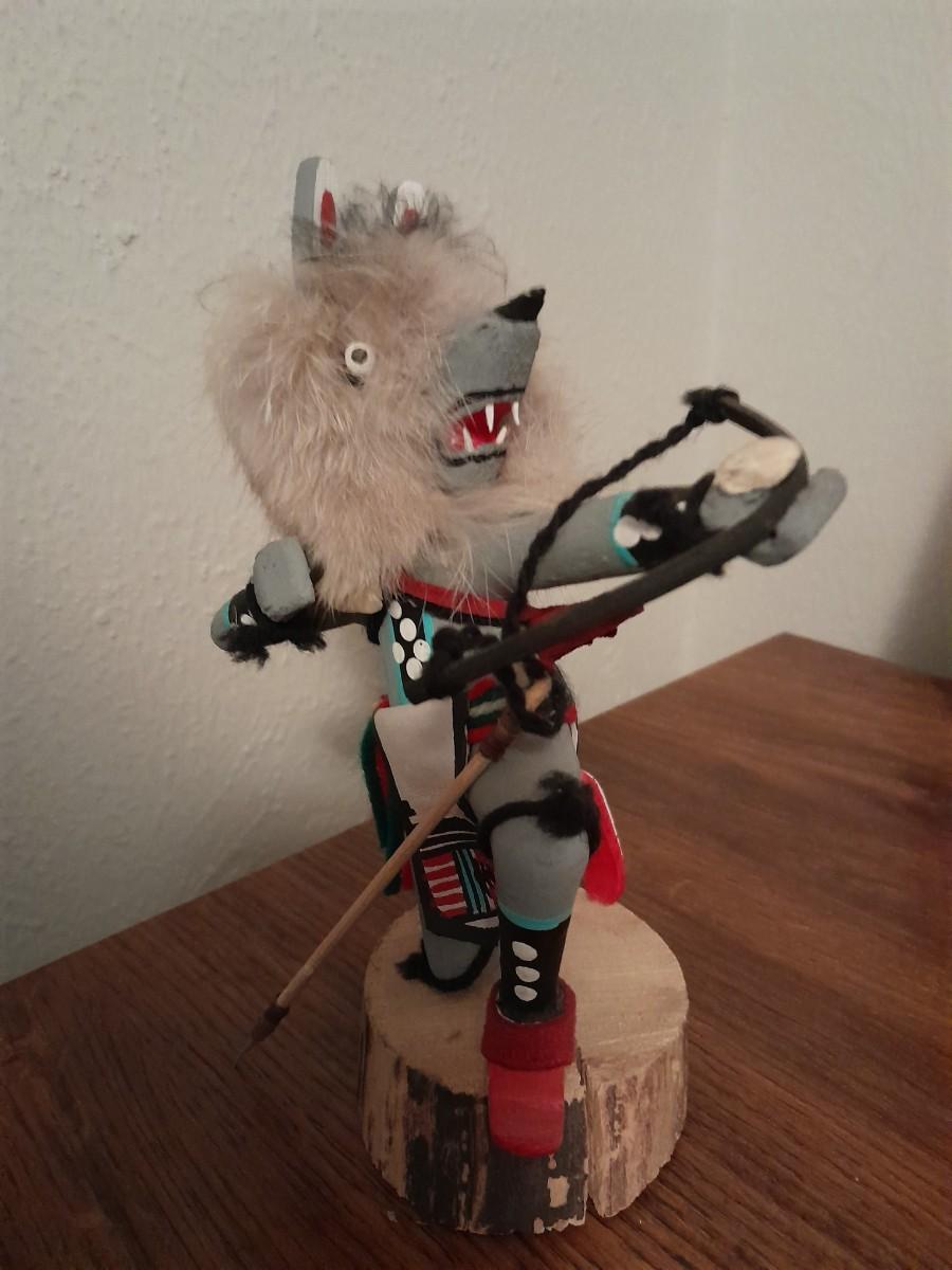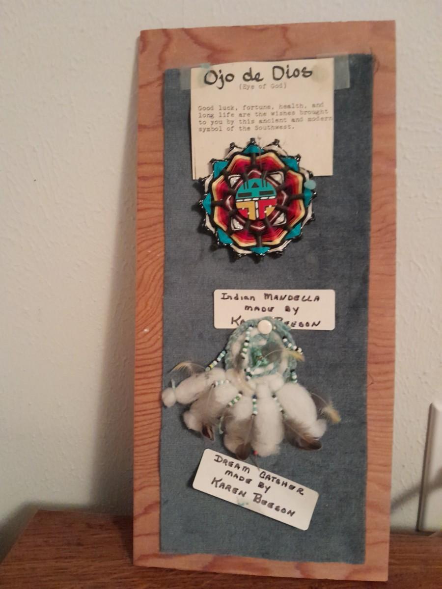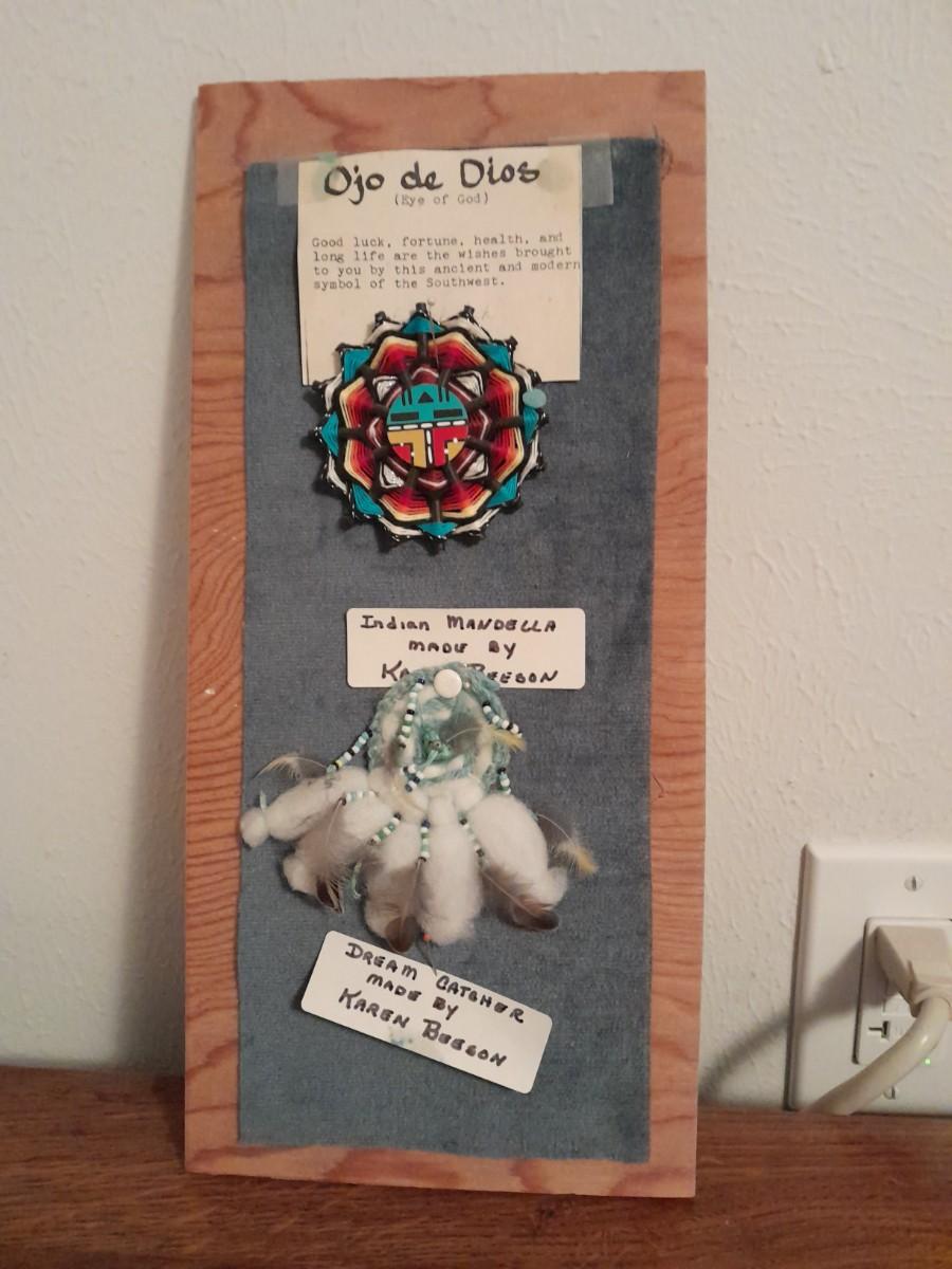 KACHINA GREY WOLF AND NATIVE DISPLAY MANDELLA DREAM CATCHER AND OJO DE DIOS