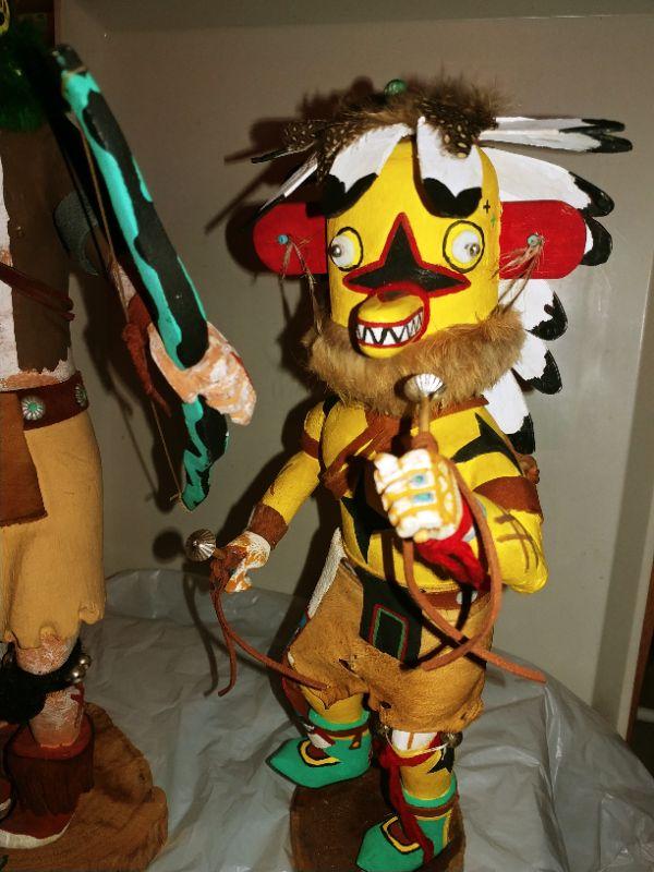 Kachinas 5 pc Wolf, Bear, Ogre, some signed