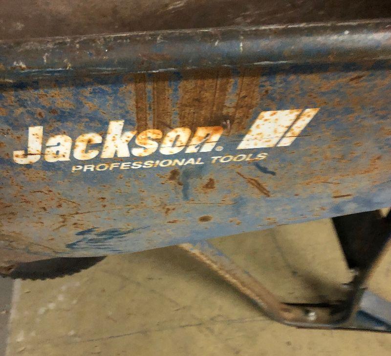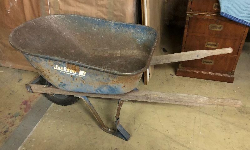 Here is a used heavy duty wheelbarrow by Jackson...Needs some air in the pneumatic tire...as shown...