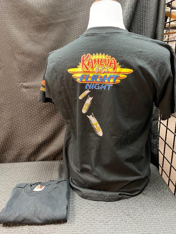 Pair of Kahlua Anything Goes B-52 Flight Night T-shirts. Sizes medium and extra large. Plain front, image on back and left sleeve. Shirts are new old stock