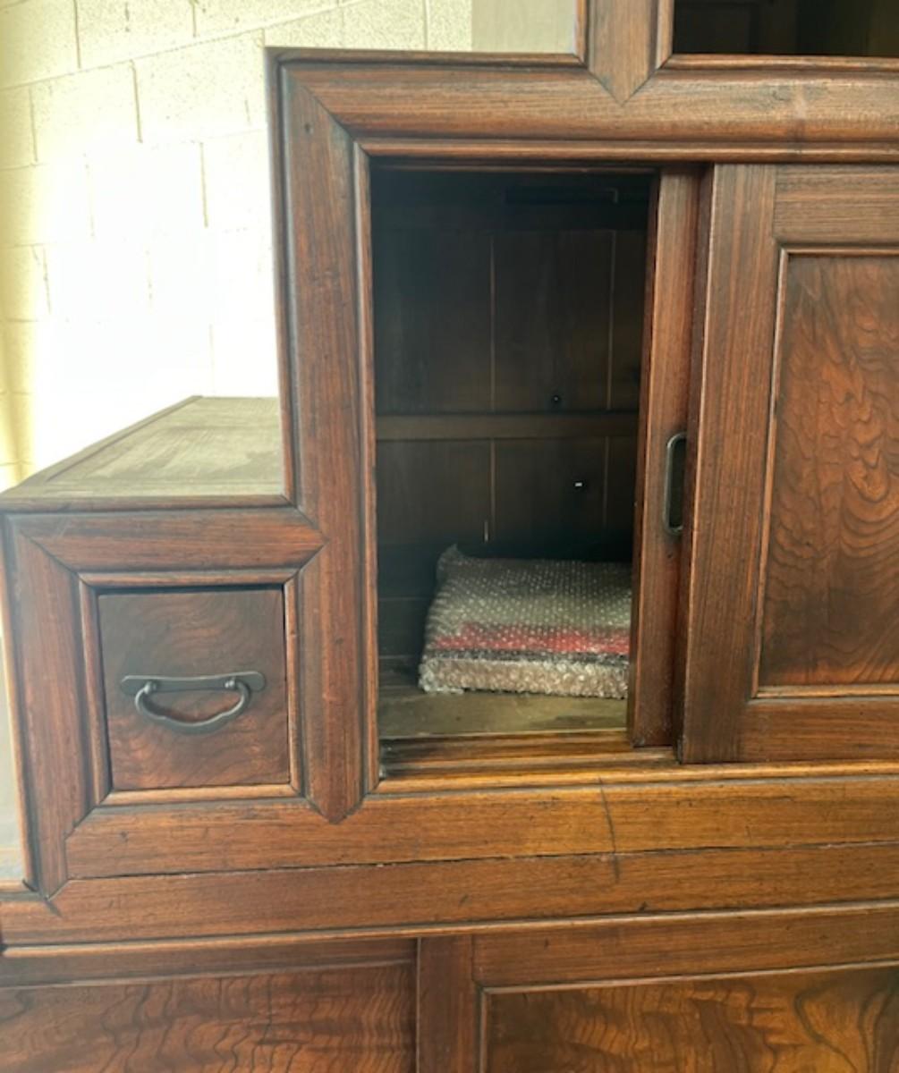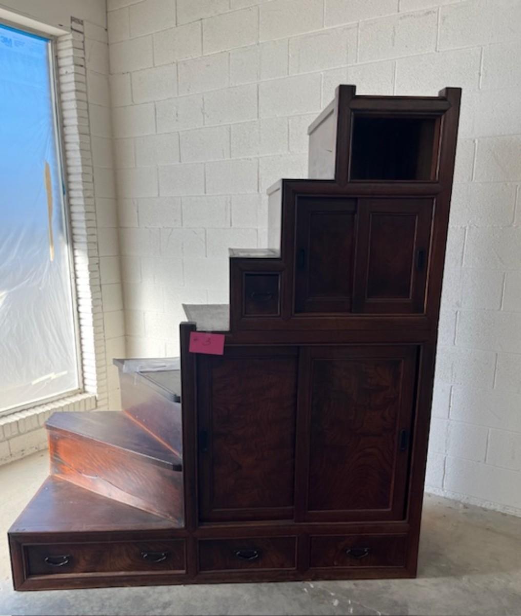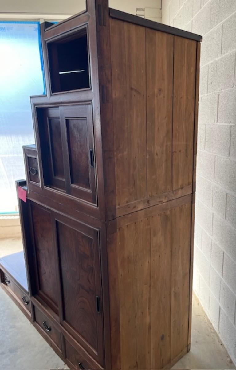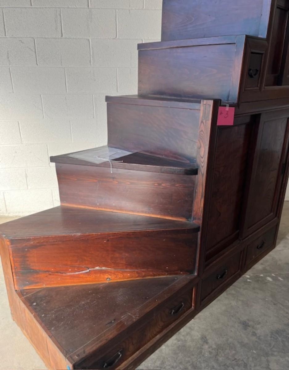 Antique 1910 Japanese Kaido-Dansu Wood Staircase Cabinet. Elm and Cedar. Dimensions 67" x 26.25 x 74.5