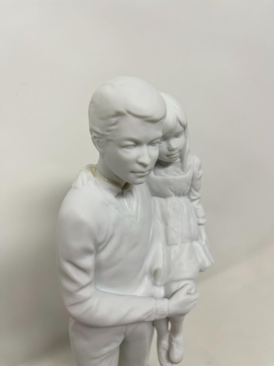 Kaiser Family Father & Daughter White Bisque Porcelain Figurine with Base