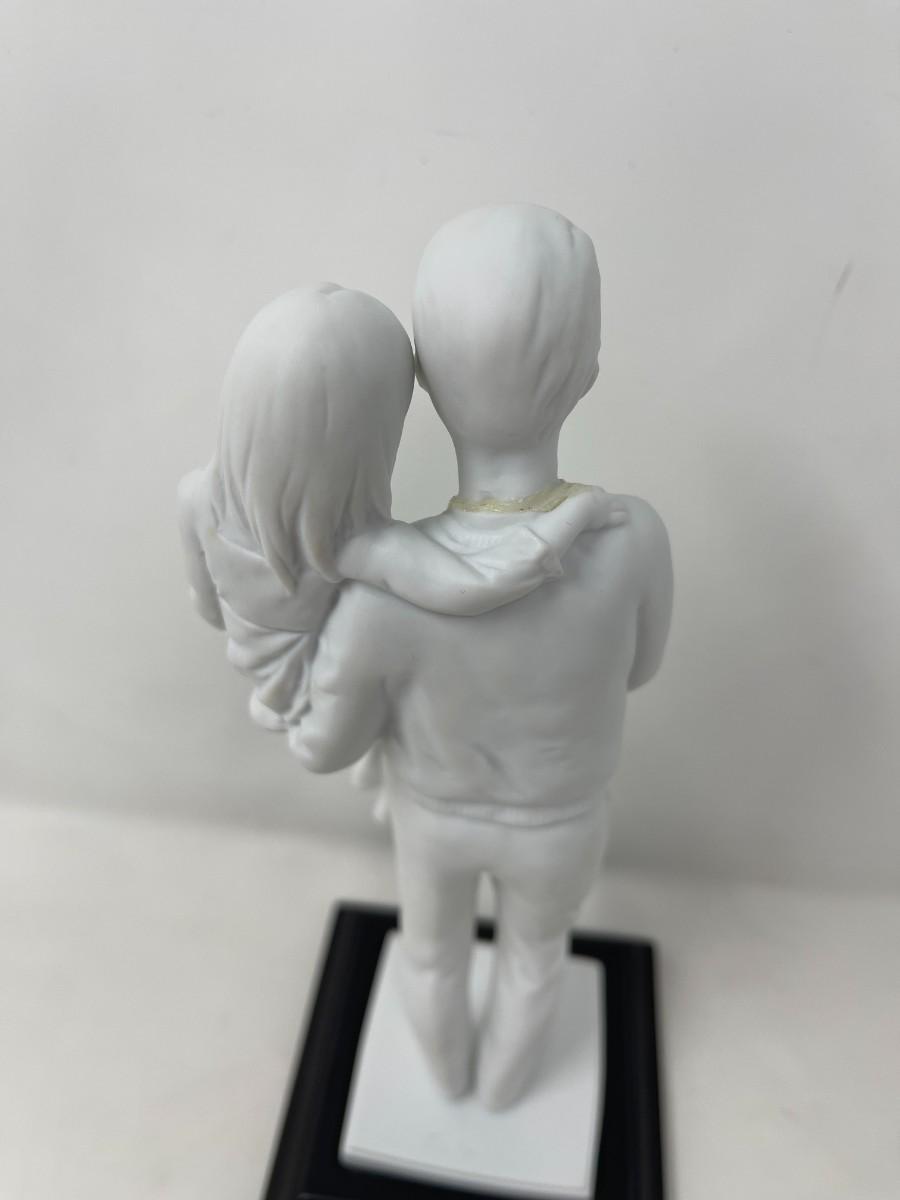 White bisque porcelain, 8 1/2" high with wooden base. Figure #752, signed, Kaiser mark on the underside. Limited edition. Does not come with COA or original box. Please note that the piece has been repaired at the father's neck. The repair was well done but you can see the glue around the neck. # 512