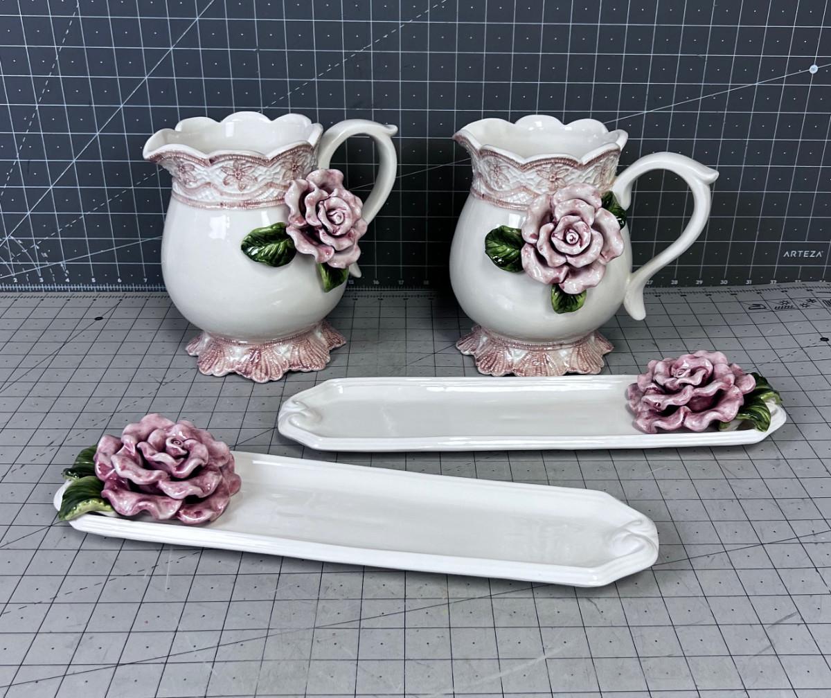 4 Pieces NEW 2 Trays and 2 Pitchers. Pretty!