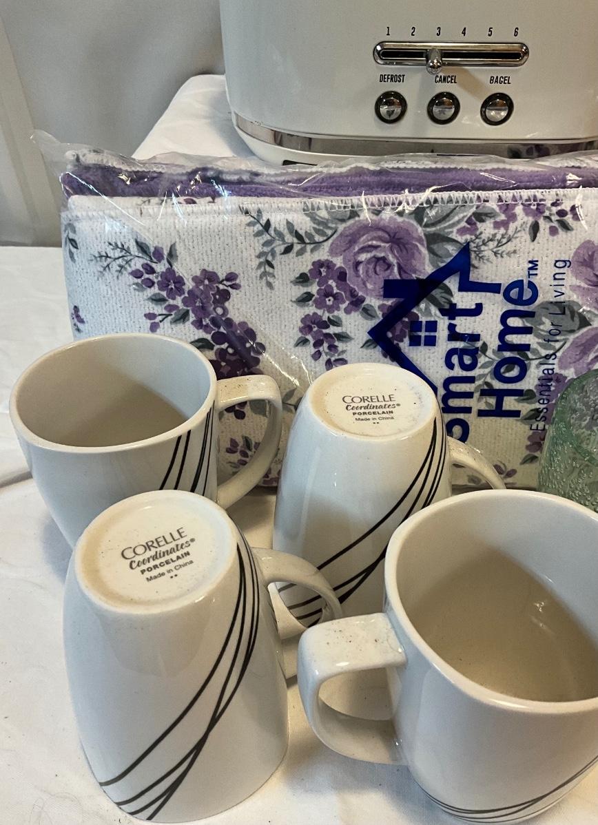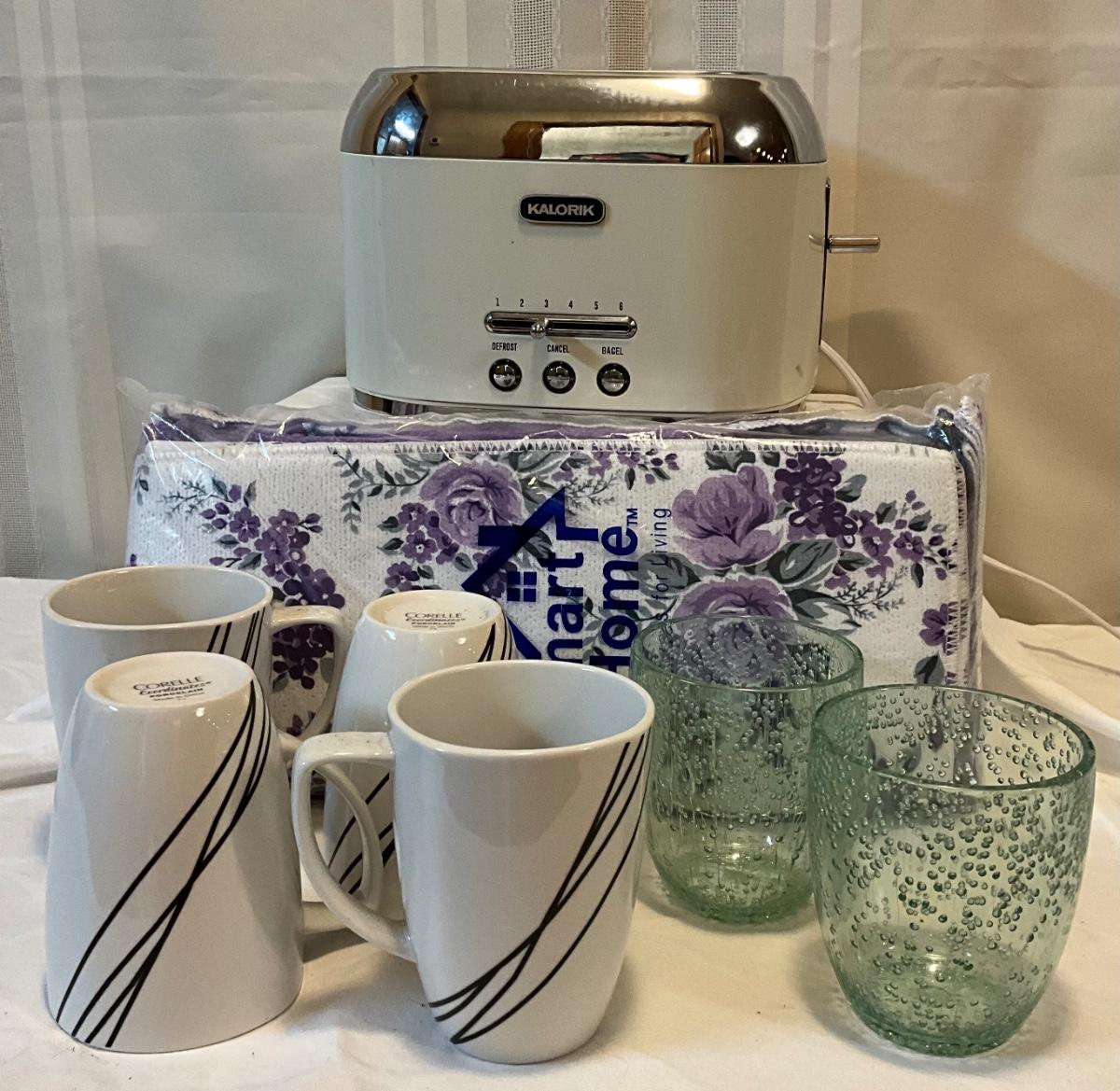 Caloric bagel, toaster with corelle cups and 7 piece kitchenware