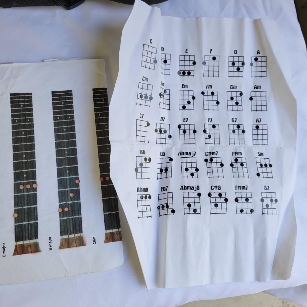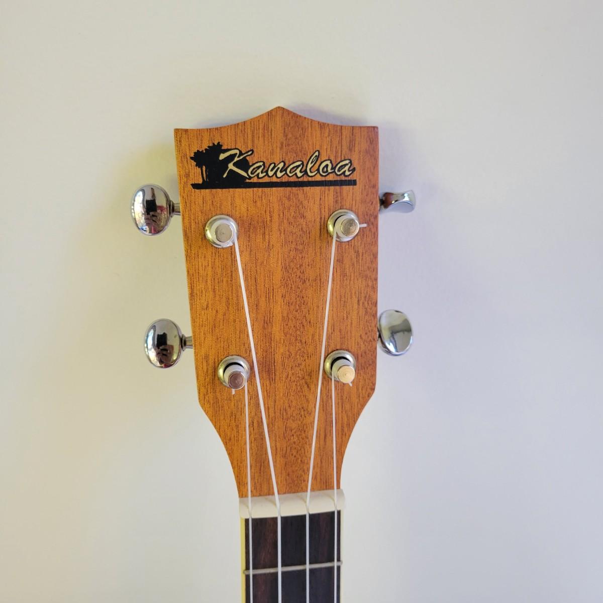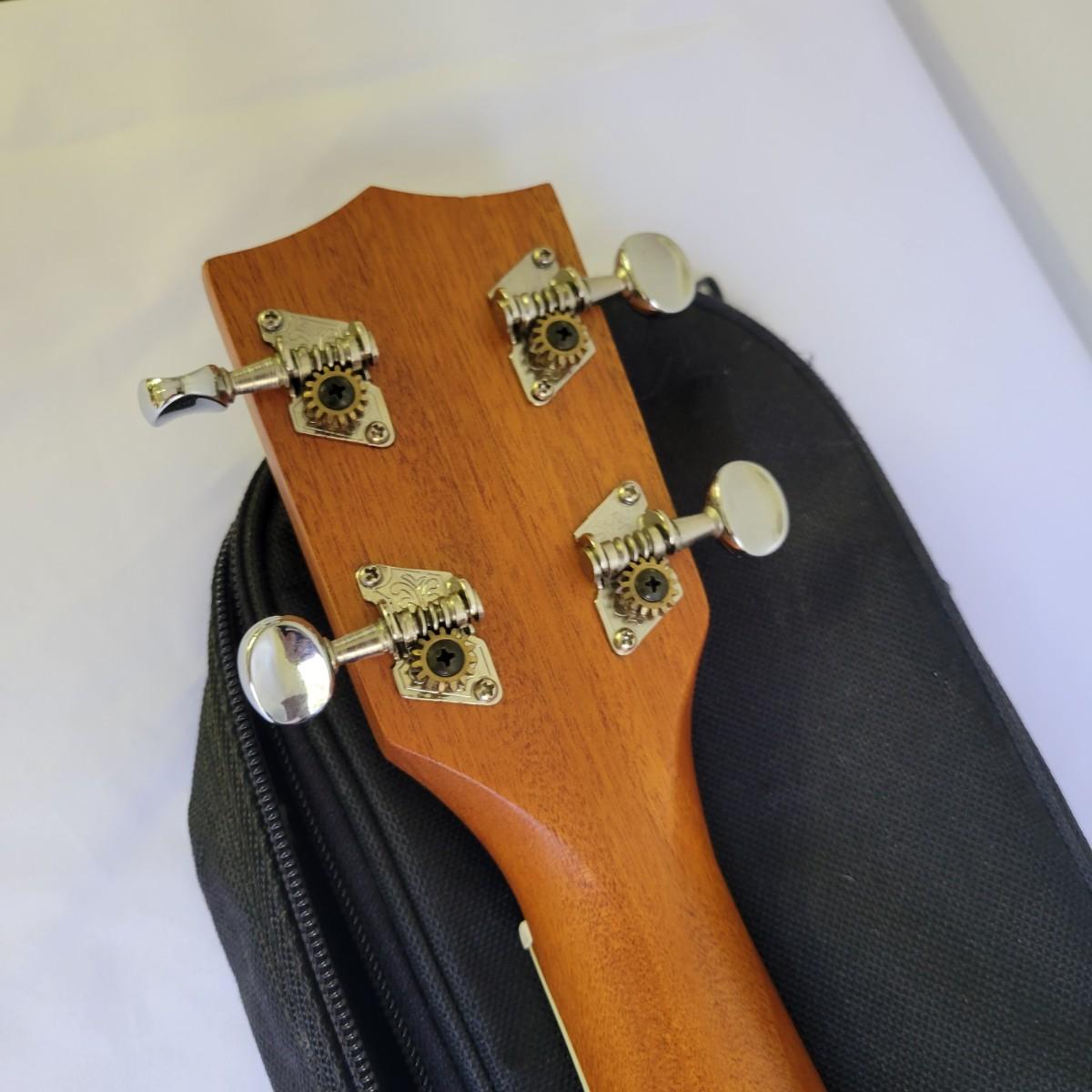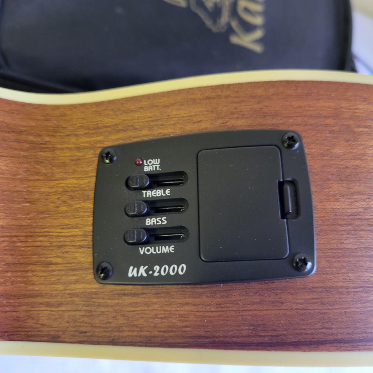 A Kanaloa ukulele that includes a carrying bag, music and finger picks. This item was not tested due to not having a 9 volt battery. It measures approximately 26.5" x 3" x 8.5"H. Local pickup only