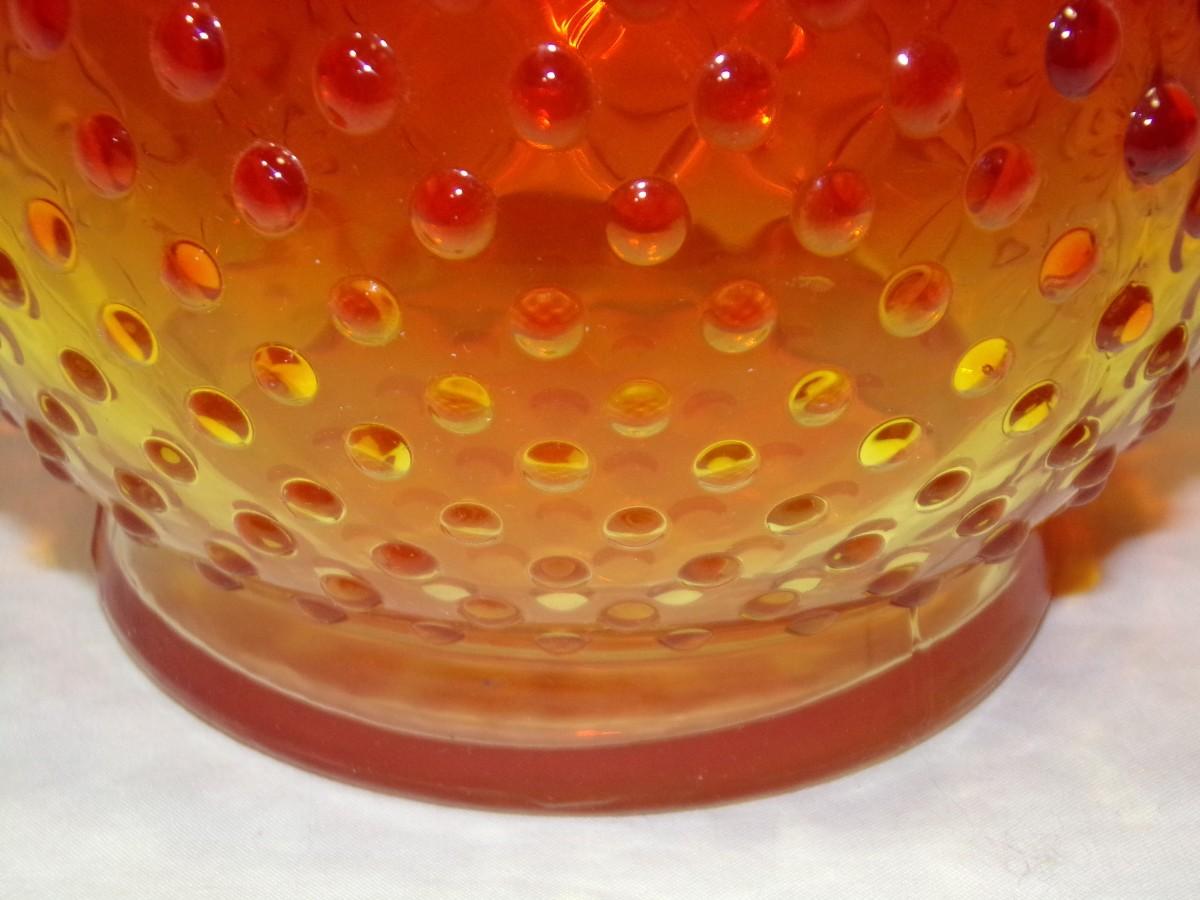 Kanawha Amberina hobnail swung glass vase