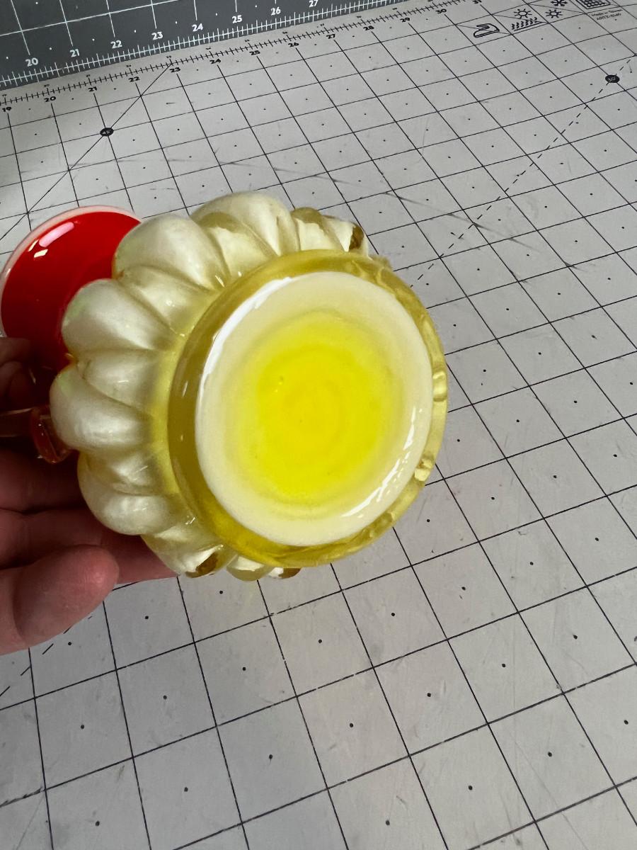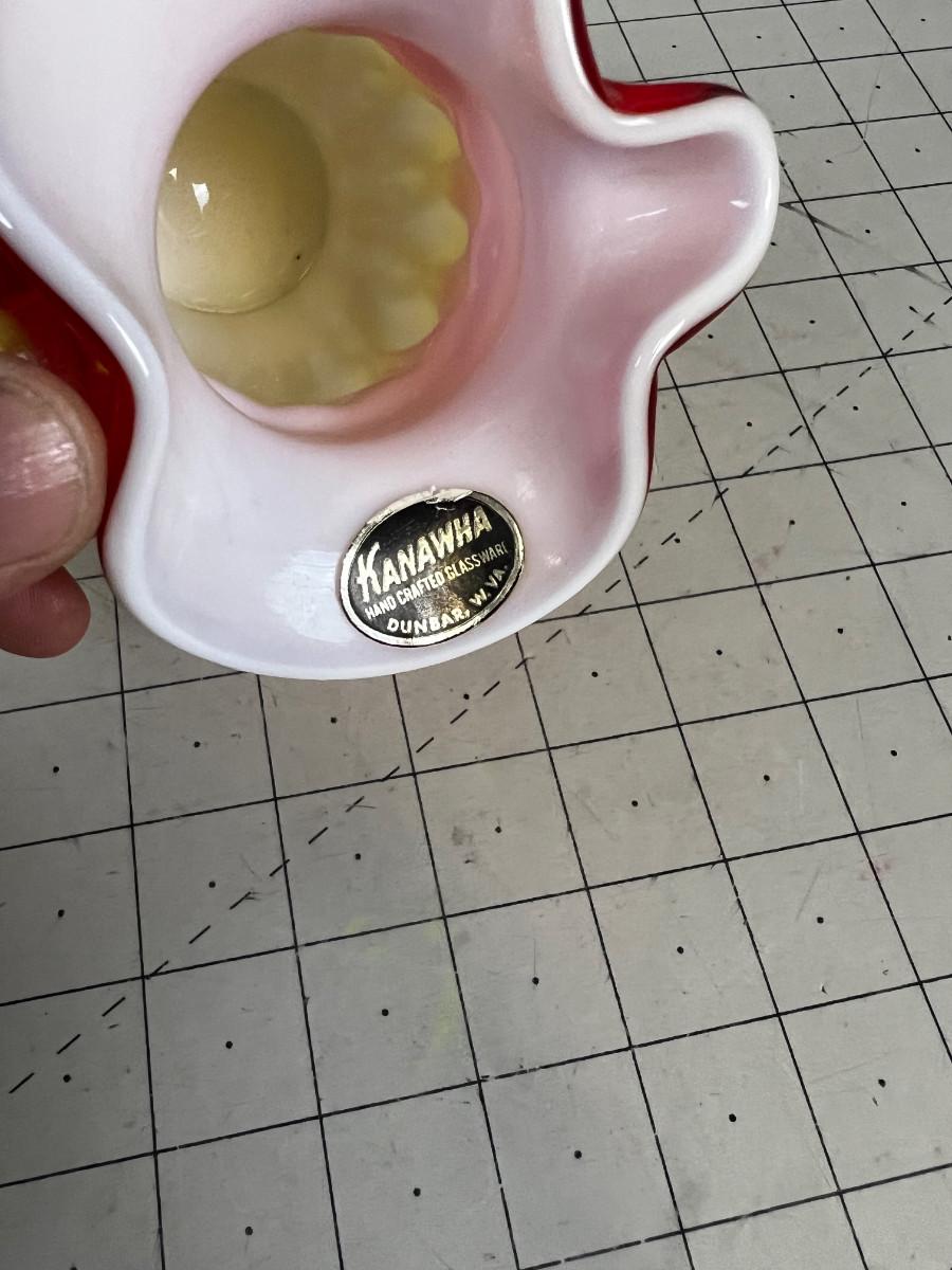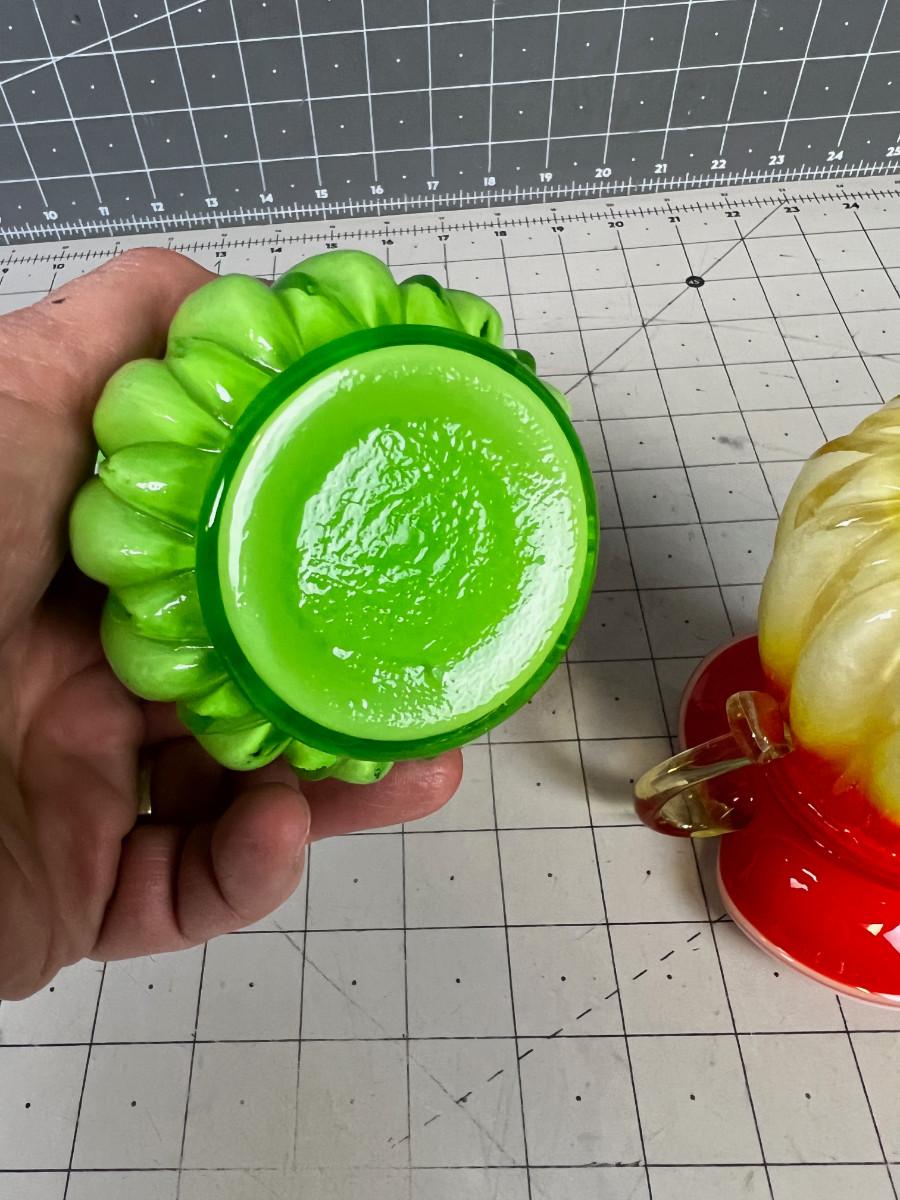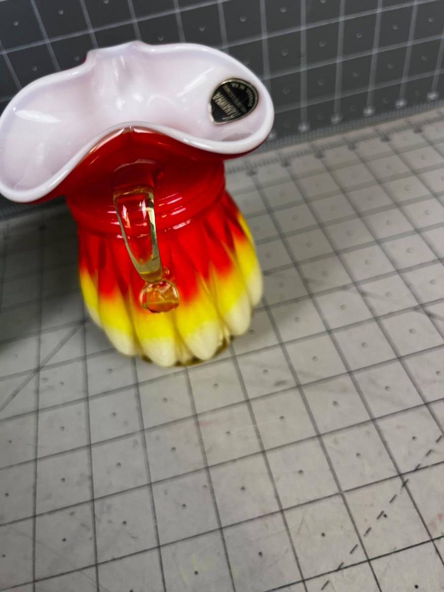 Kanawha Cased Glass Small Pitchers (2) Green & Orange/Yellow.