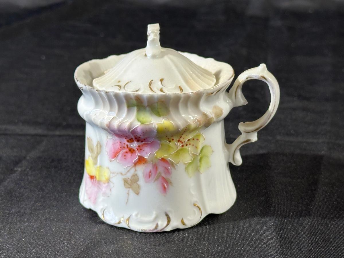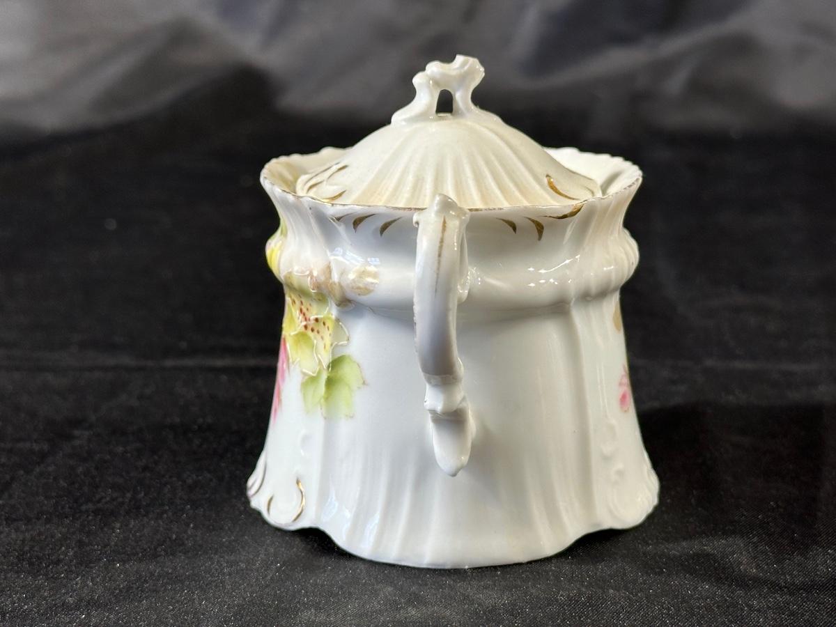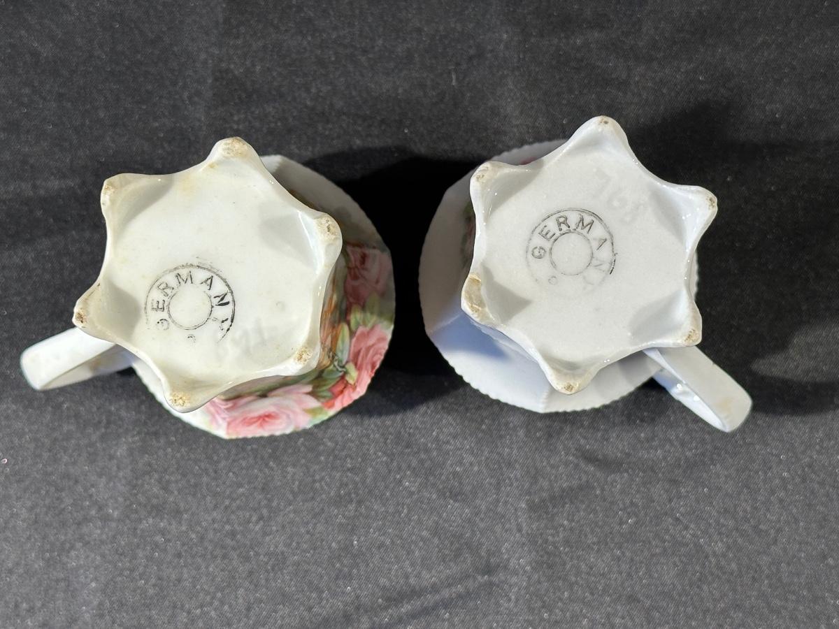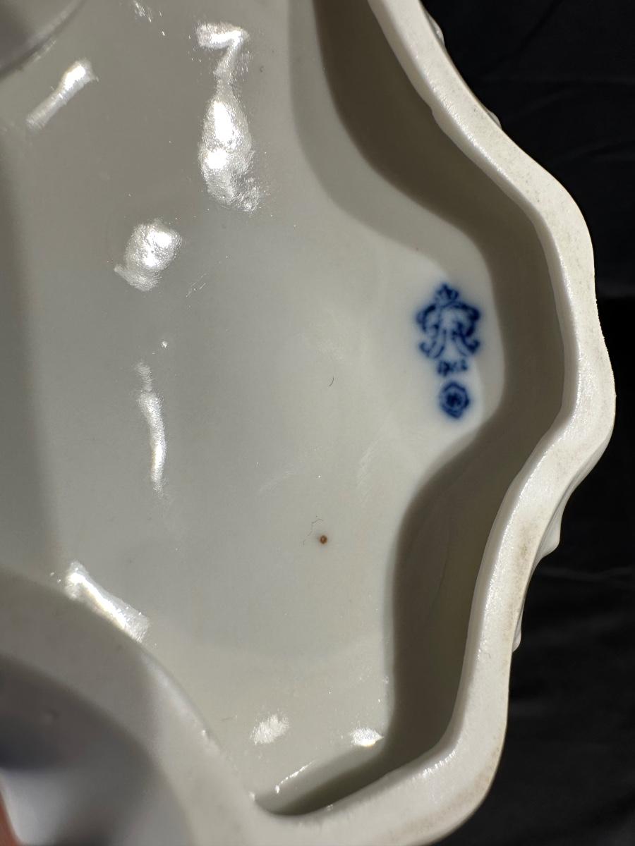 Sugar dish is unbranded and the two matching standing dishes are branded as “Germany” on the bottom (pictured)