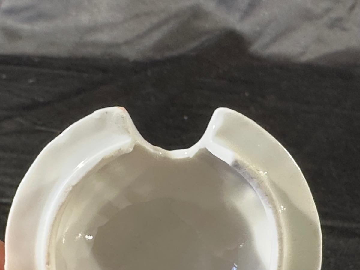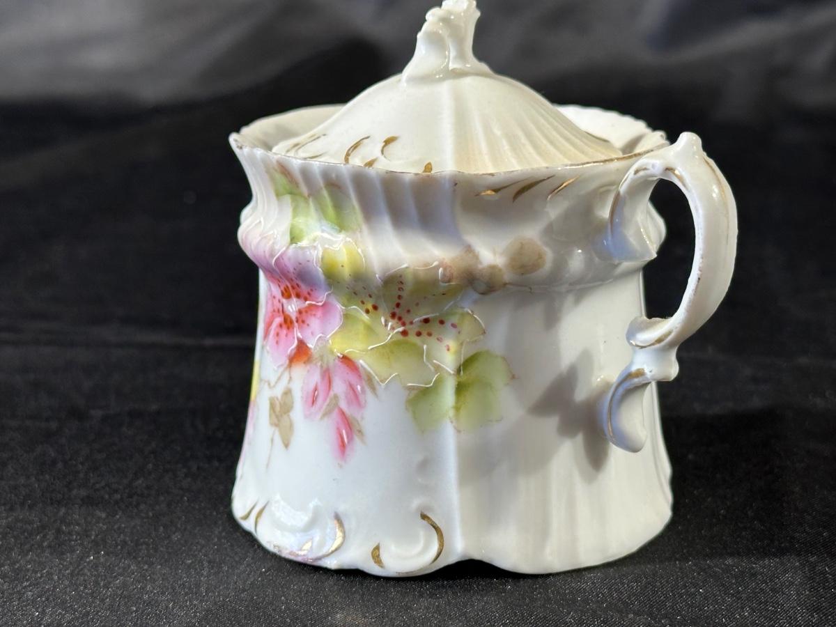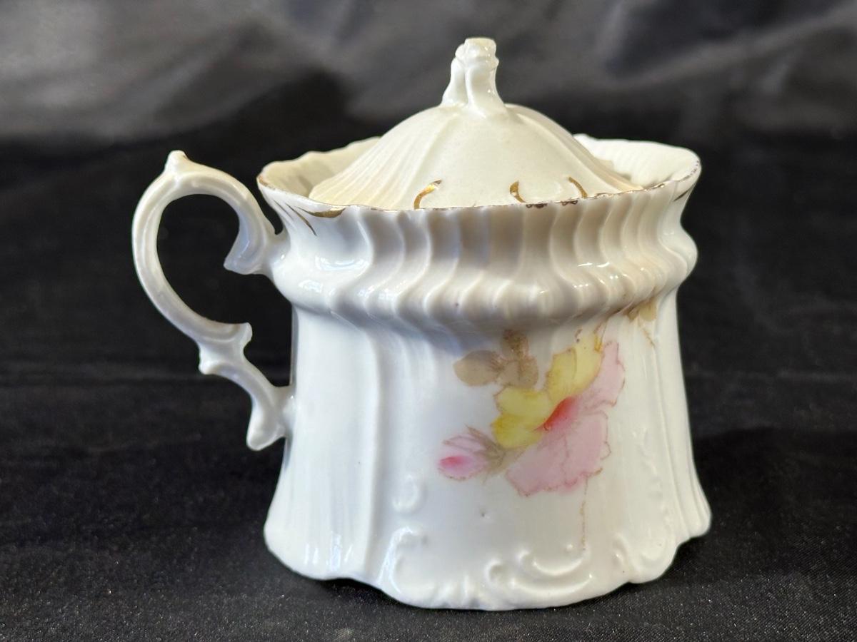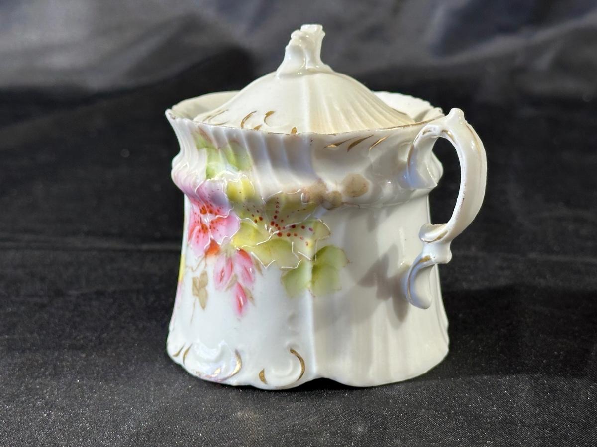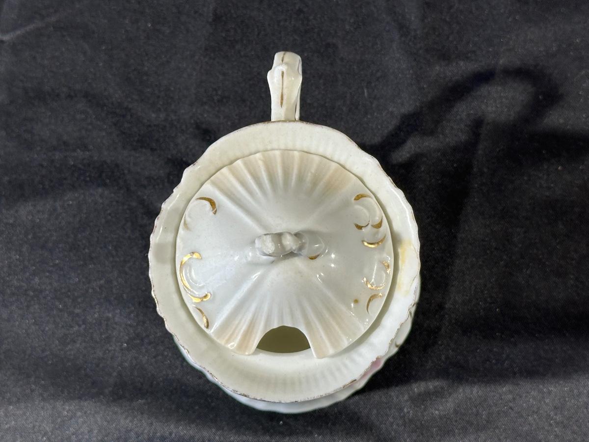 Sugar dish is unbranded and the two matching standing dishes are branded as “Germany” on the bottom (pictured)