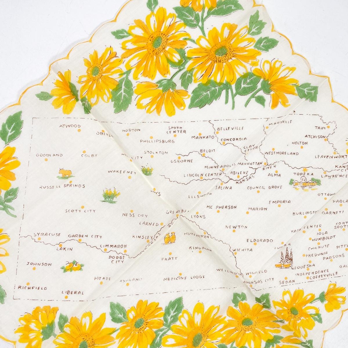 KANSAS MAP & SUNFLOWER HANDKERCHIEF