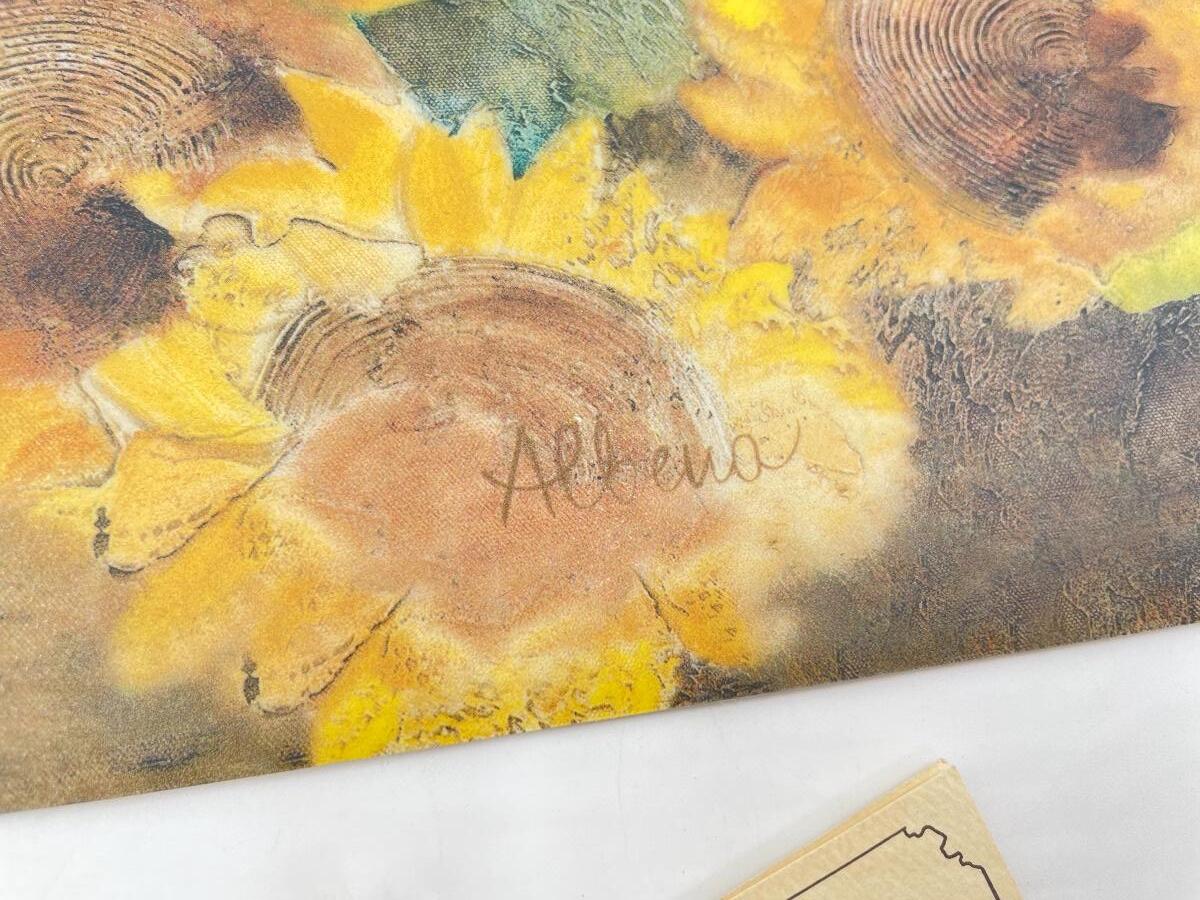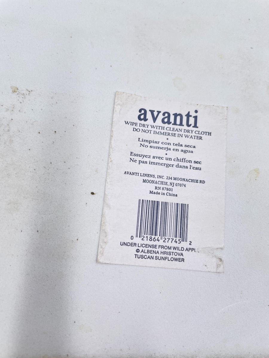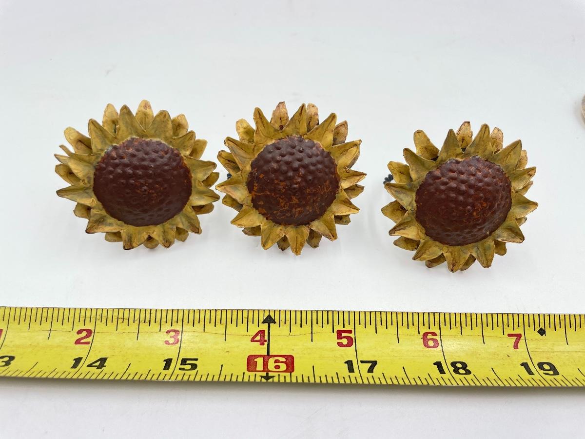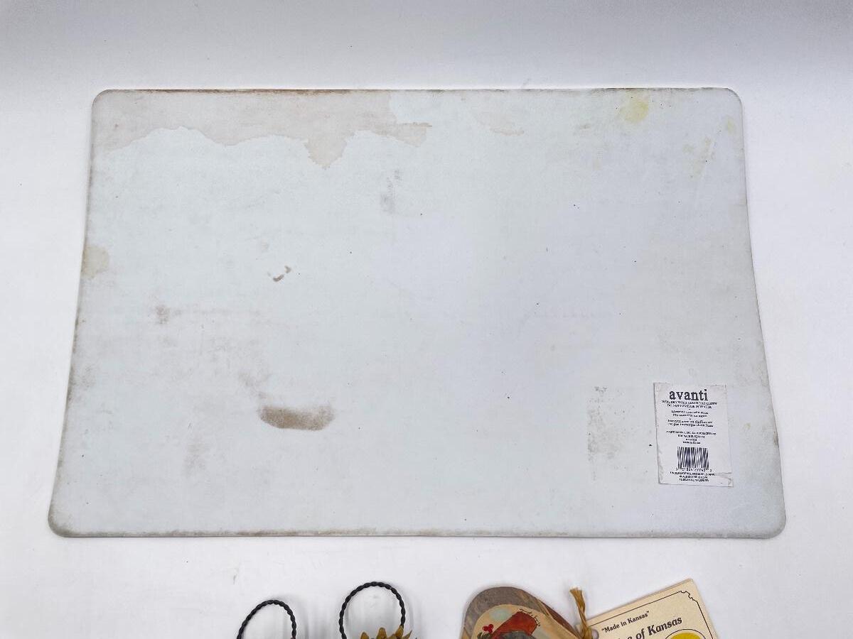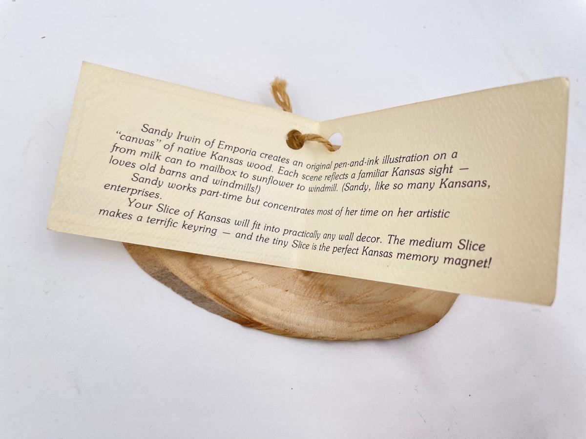 (1) large placemat or pad, (3) sunflower napkin rings, (1) “Slice of Kansas” wooden slab artwork piece by Sandy Irwin.