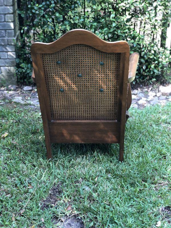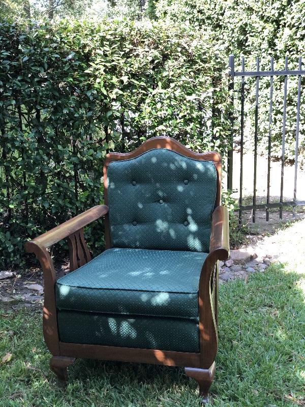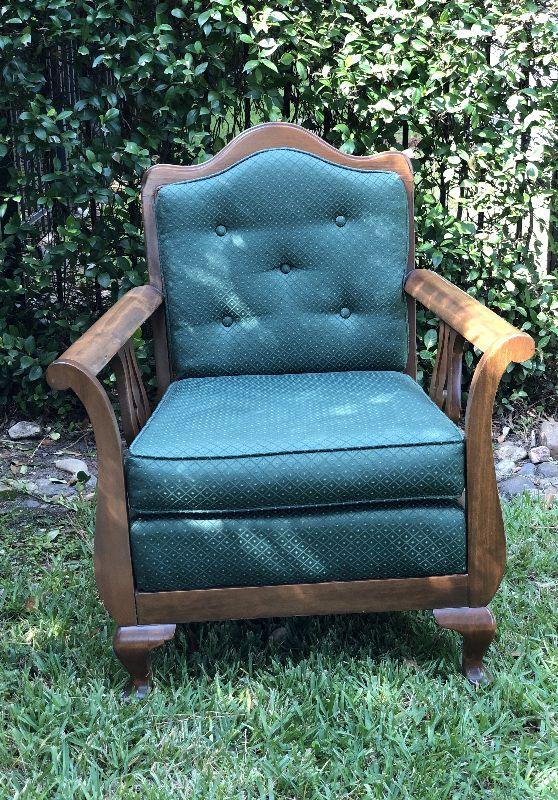 Perfect 1920 to 1940’s solid built. I love this short cabriole leg chair; the upholstery is in fabulous shape. I love how the expertly it was reupholstered with those nice touches that only the best upholstery shops can produce. I don’t know much more about this piece but is solid and has good joints. Perfect for a reading nook!