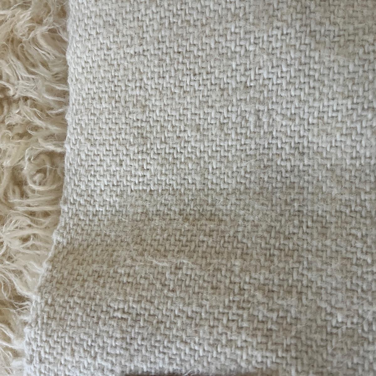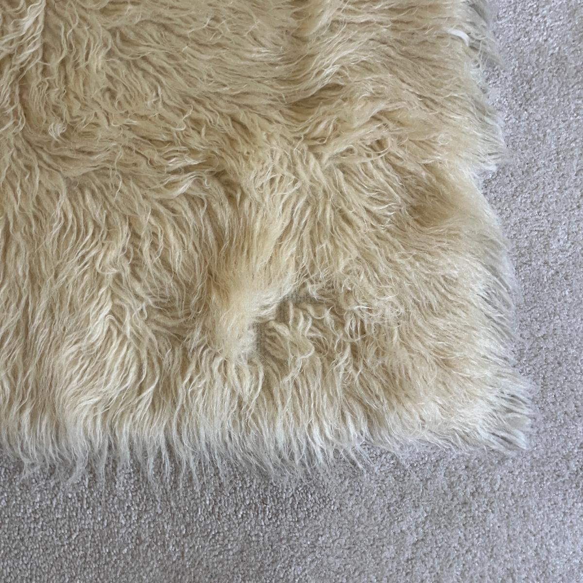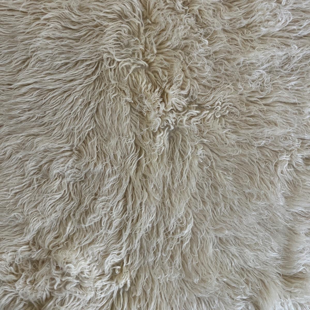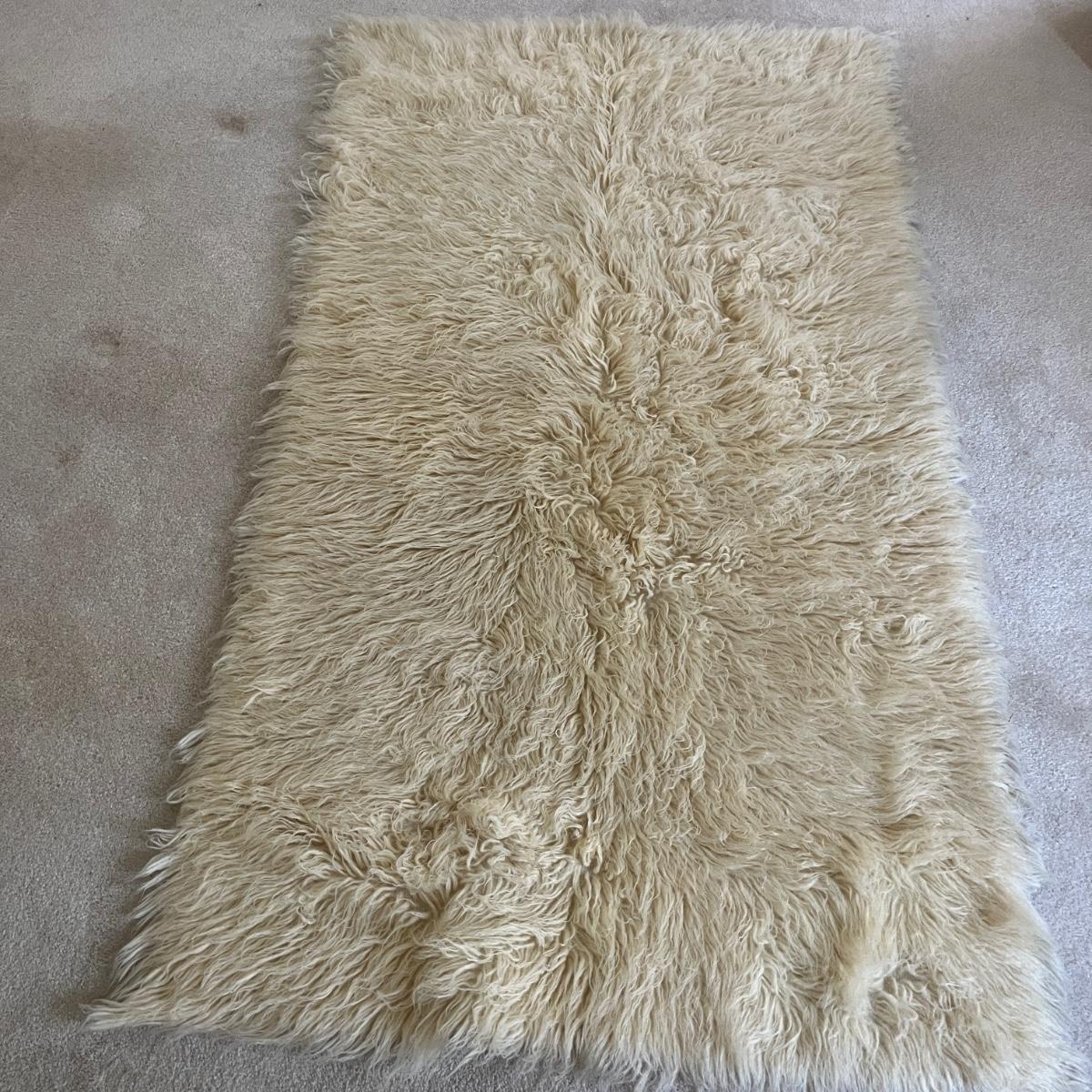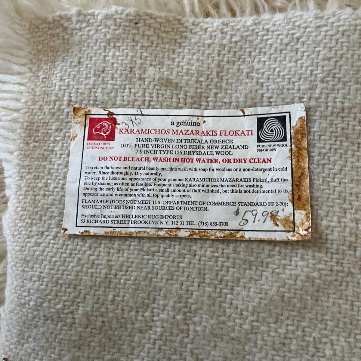Lot includes a Karamichos Mazarakis Flokati rug hand woven in Greece, with New Zealand wool. Rug measures 5’4” x 3’ 1”.