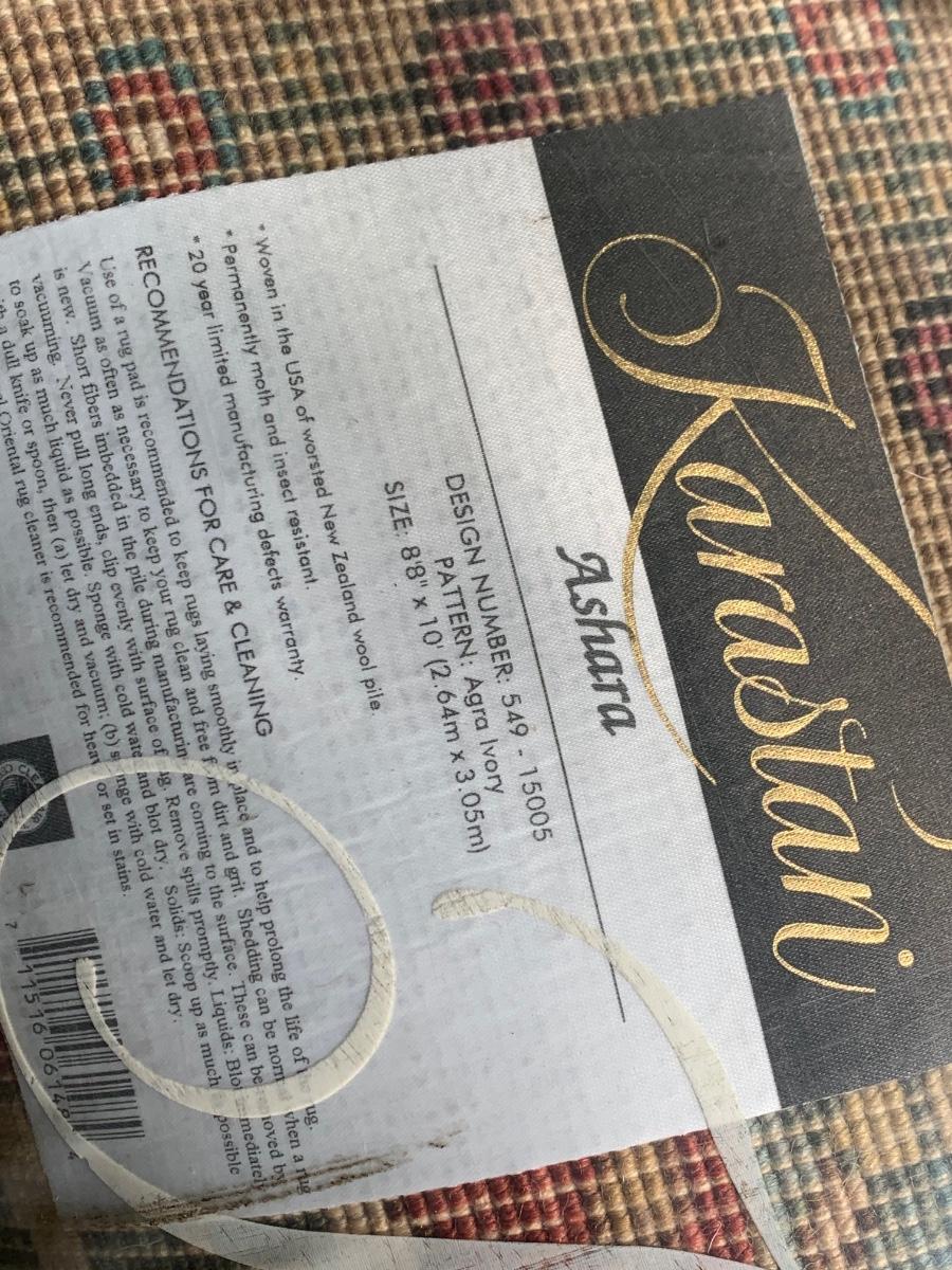 Karastan 8 x 10 Ashara Agra Ivory Pattern #549-15005 Wool Rug - New In Plastic - Lot 148