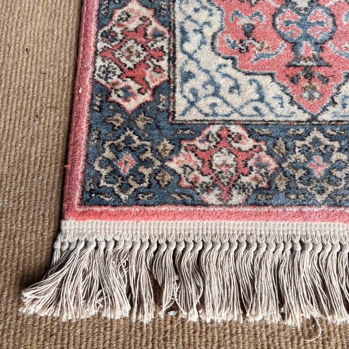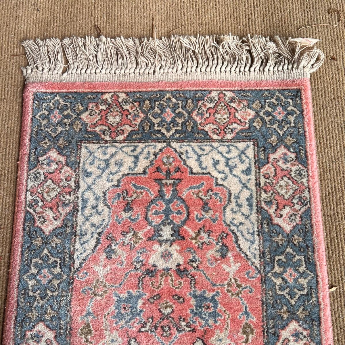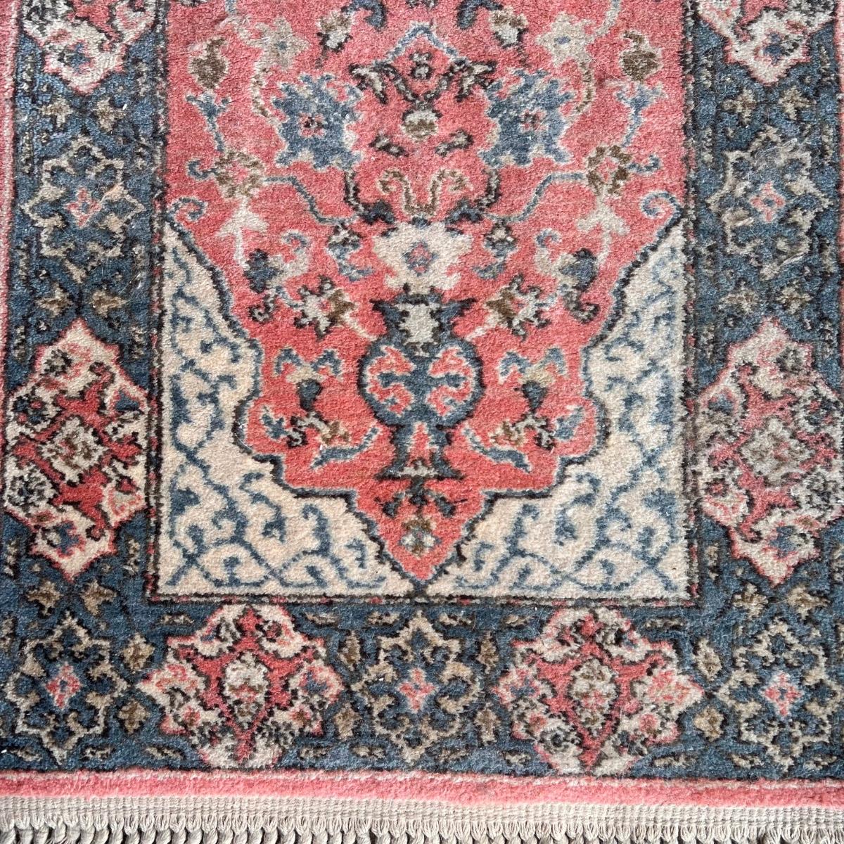 This lot includes one Karastan rug that measures 56” x 26”H. It has hues of pinks, blues, and browns. Shipping available.
