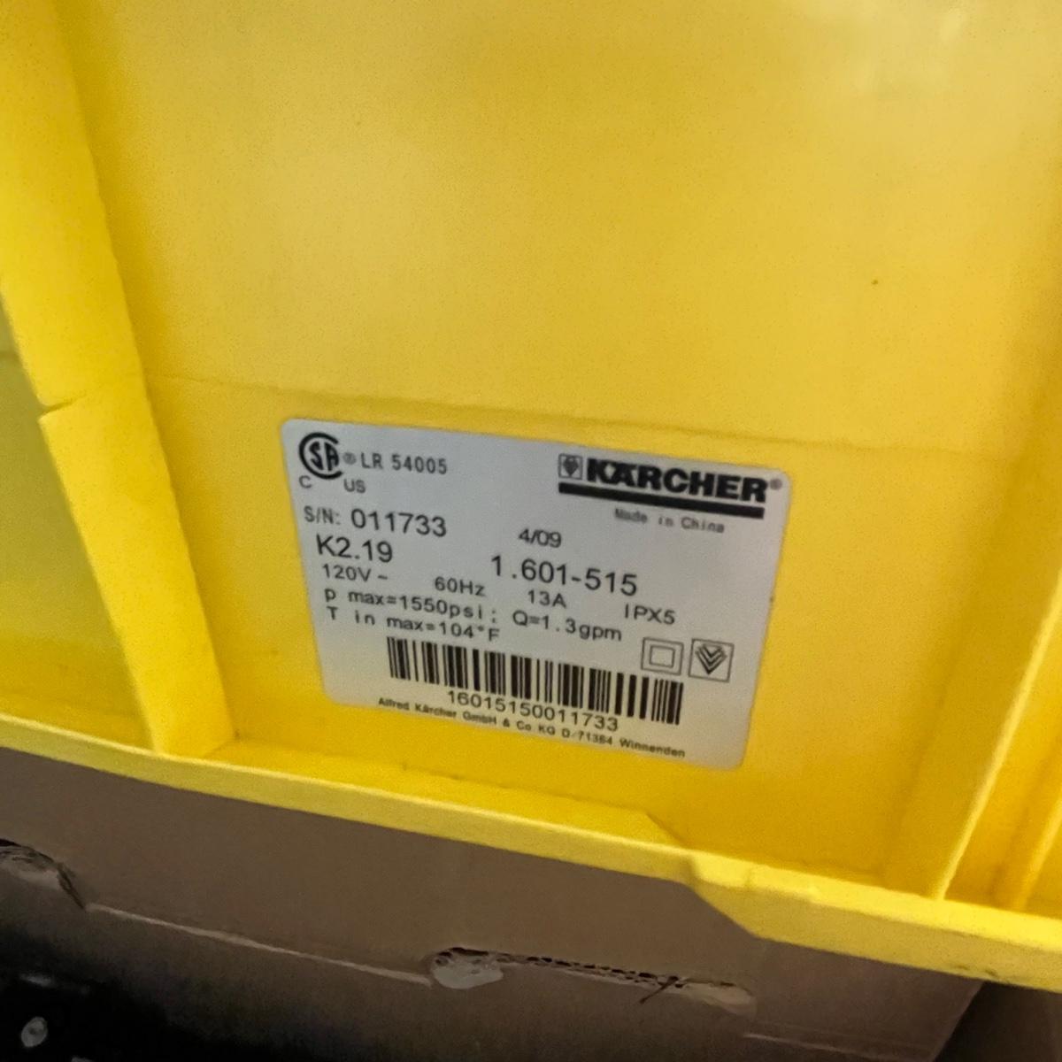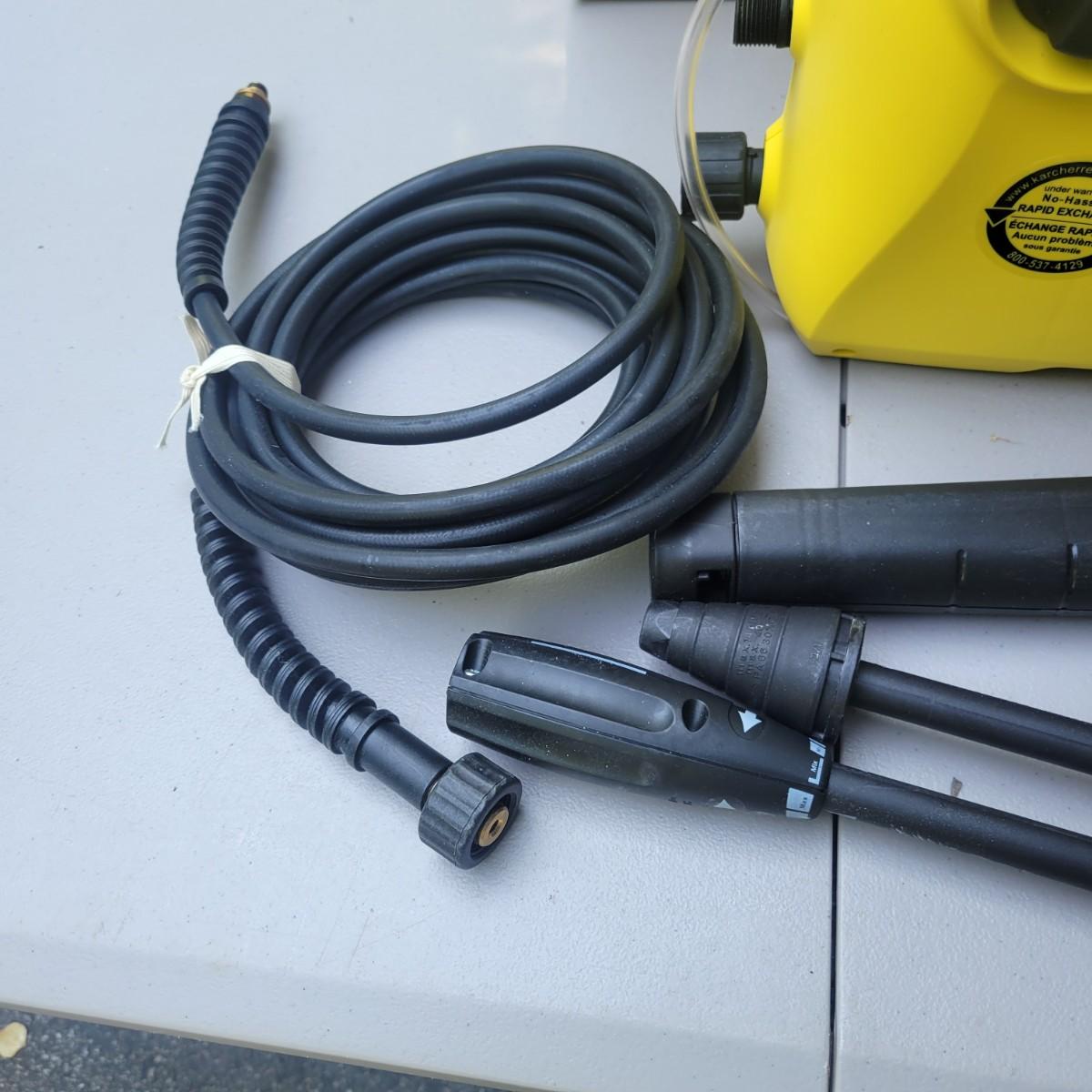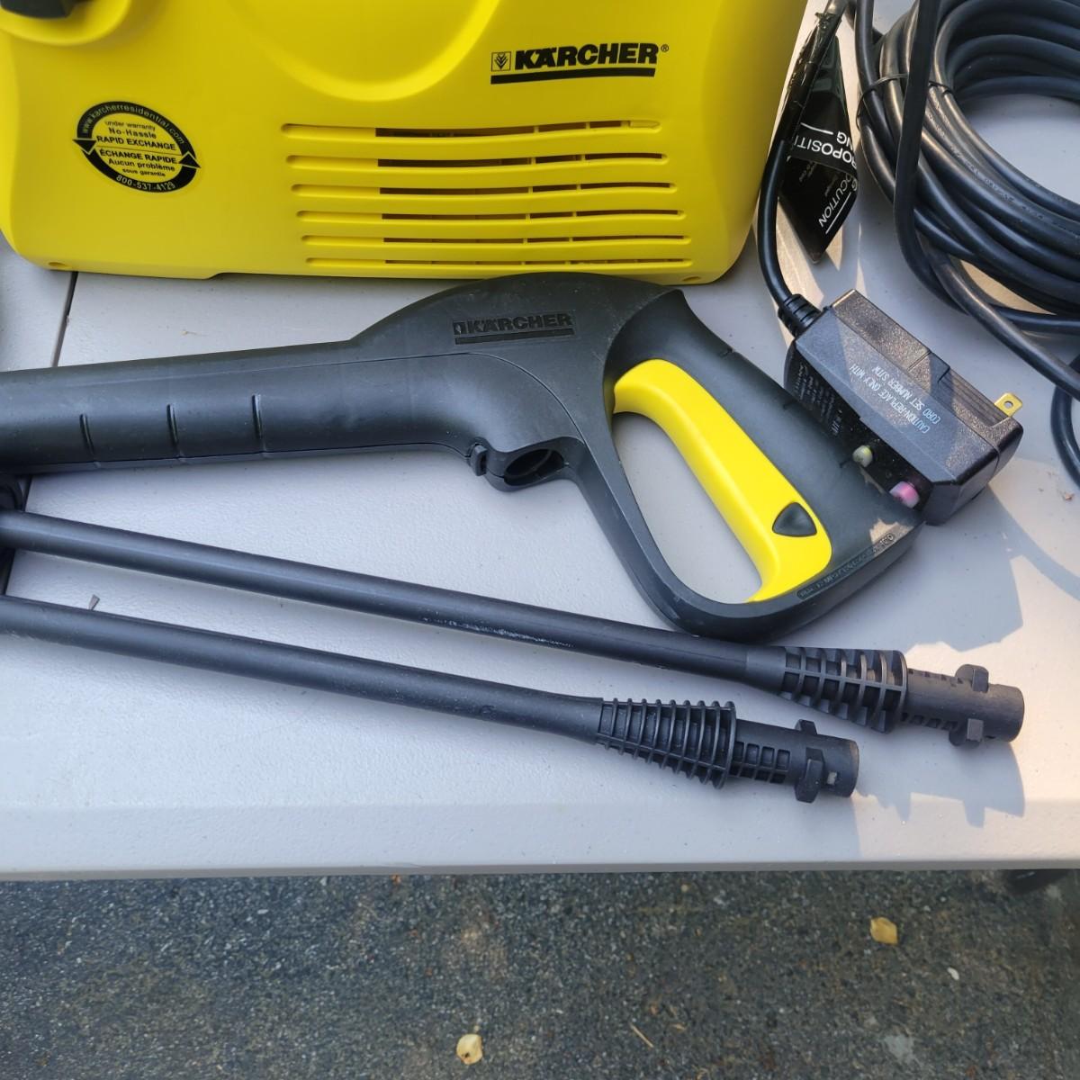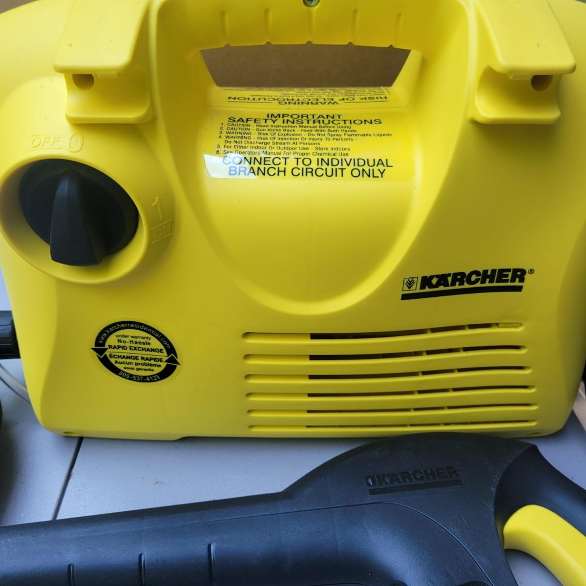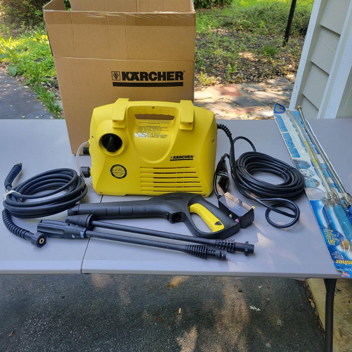 Karcher 1500 psi electric pressure washer new and in original packaging. Unit measures approximately 14" x 6" x 11". Also includes 2 water jet power washers that turn any hose into a high powered washer. Local pickup only