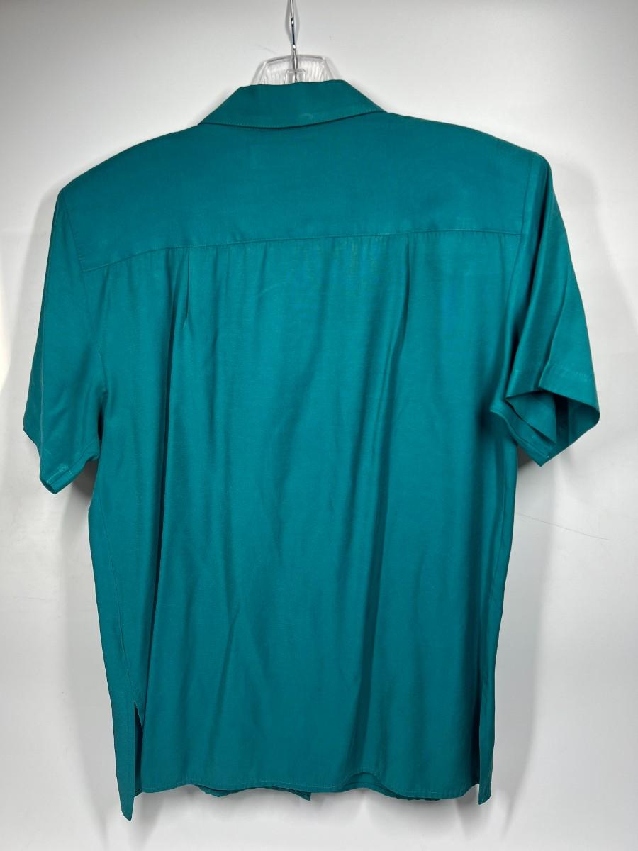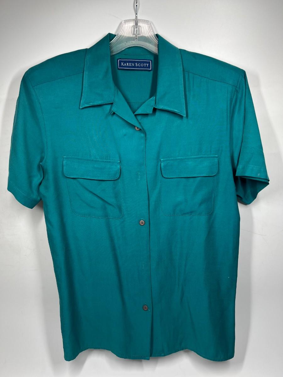 Karen Scott Padded Short Sleeve Small Turquoise Buttoned Up Shirt Size Small