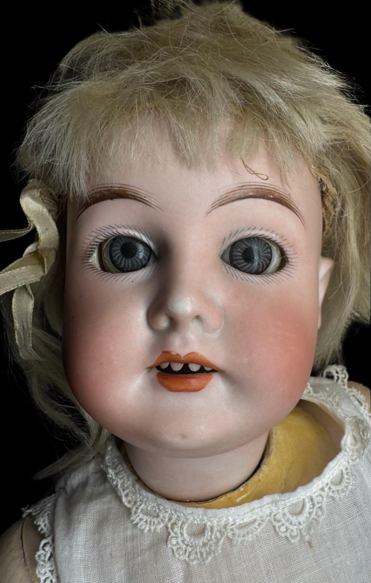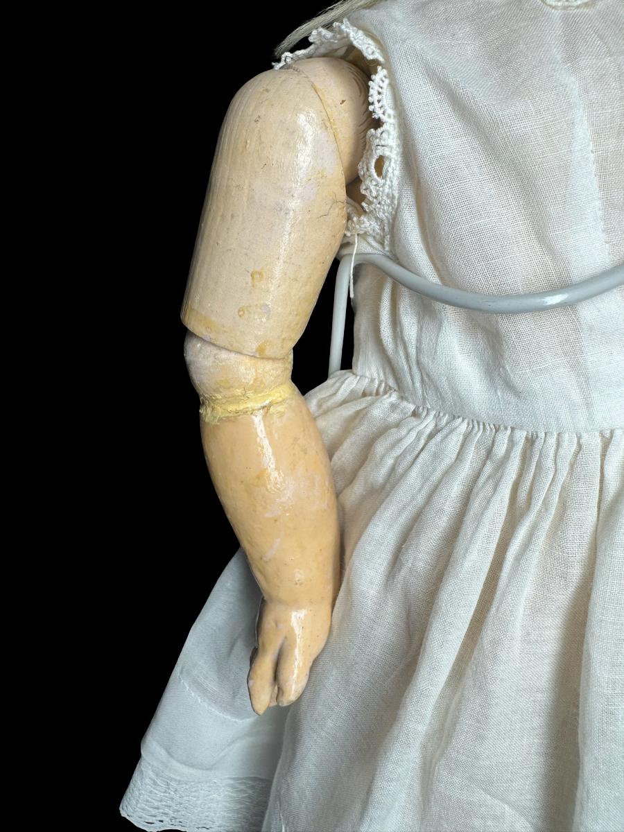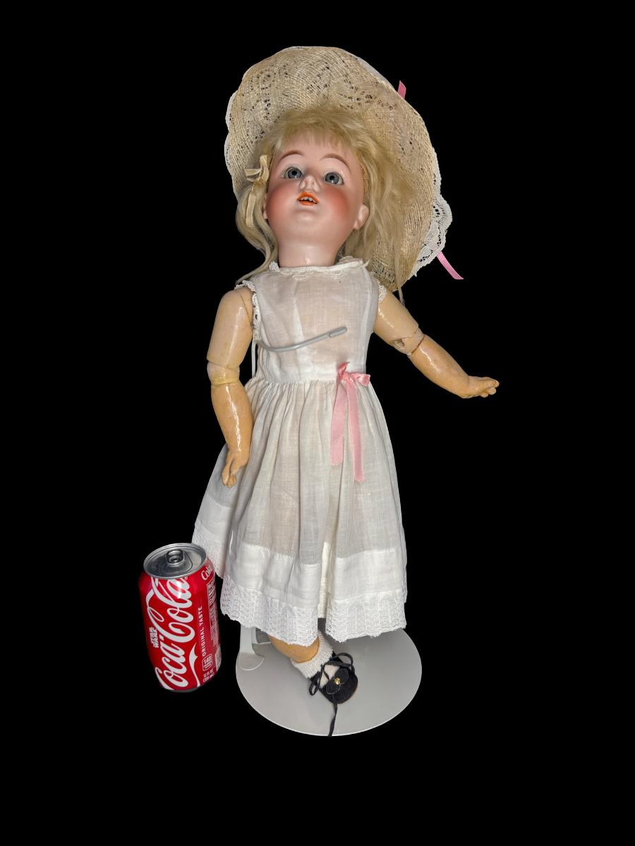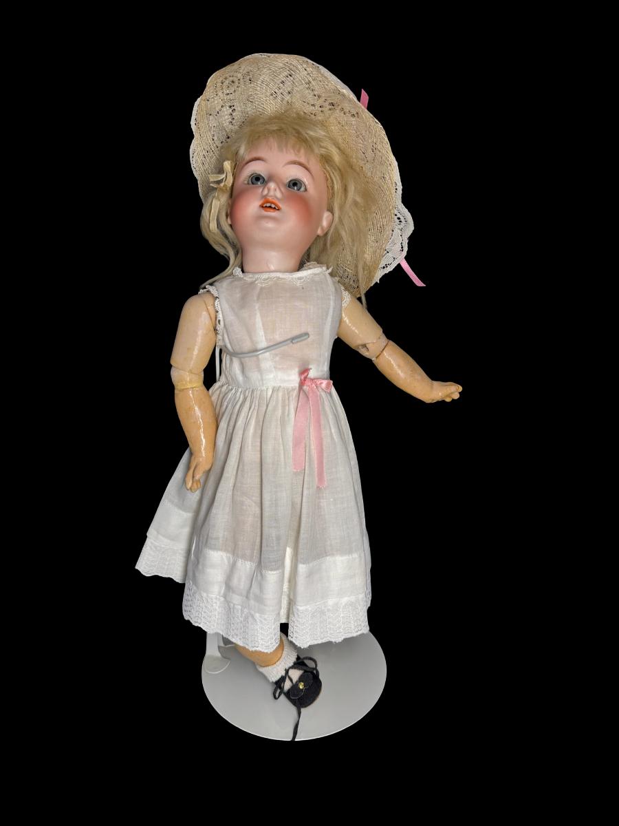 Early bisque doll with modern hand made clothing. The bisque head shows only age related wear. The legs and arms show scratches, but otherwise have no major issues. Measurement of doll: 19”H. Pre-auction estimate: $50-$100. [LD]