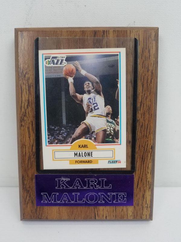 Karl Malone Fleer 1990 Basketball Card on a Plaque
