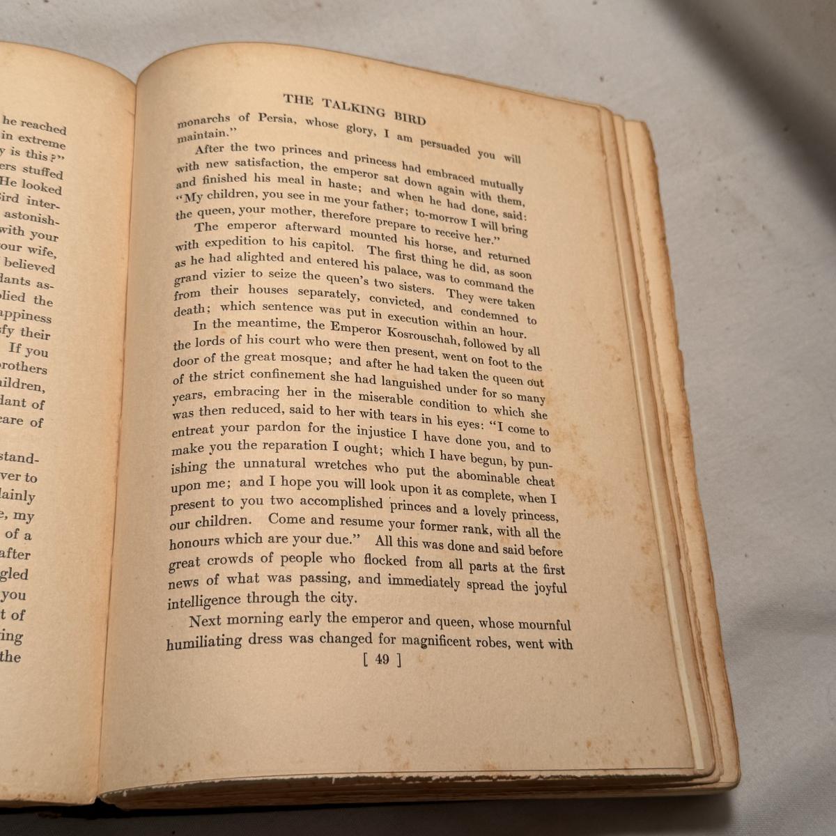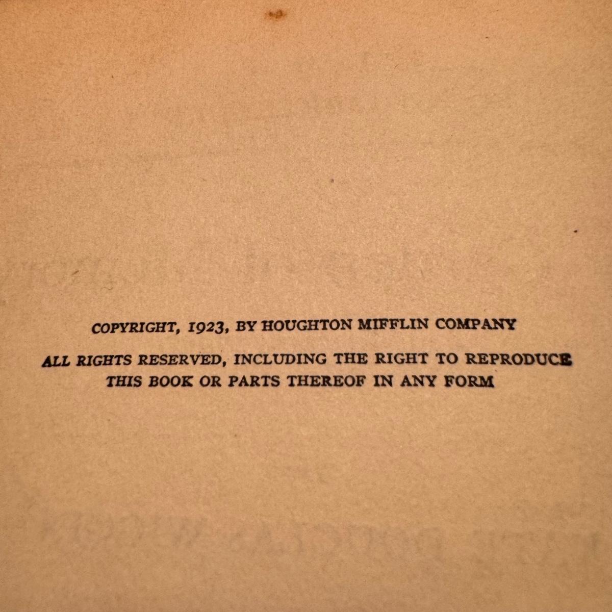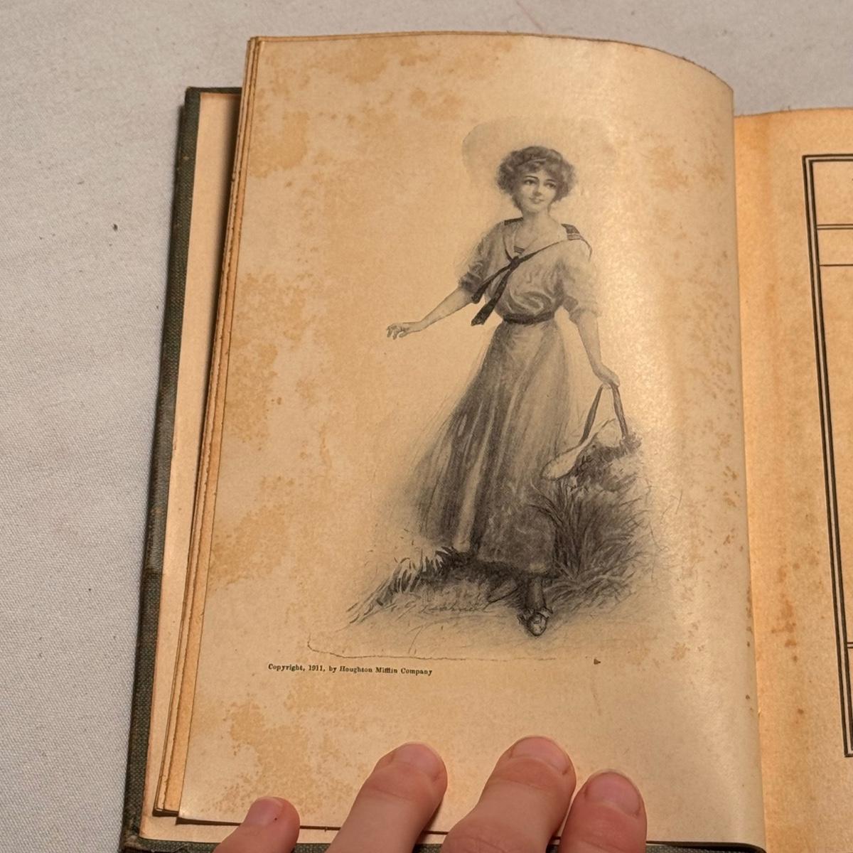 This lot includes five Kate Douglas Wiggin antique books. There is Rebecca of Sunnybrook Farm (copyright 1903), The Old Peabody Pew (1907), Robinetta (1910), My Garden of Memory (copyright 1923), and The Arabian Nights: Their Best-known Tales (copyright 1909). The largest book measures 7” x 9.5” x 1.5”H. Shipping available