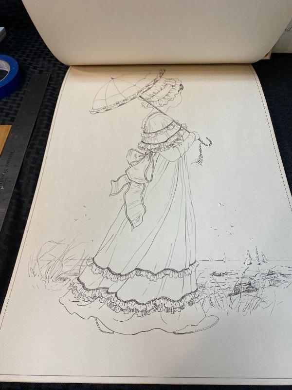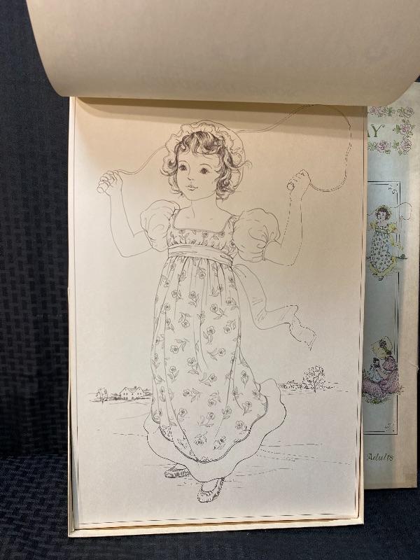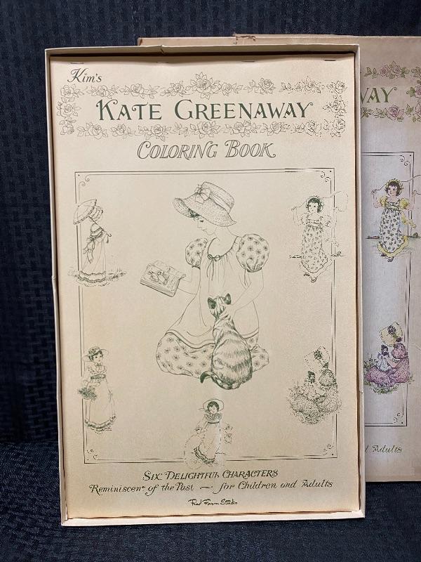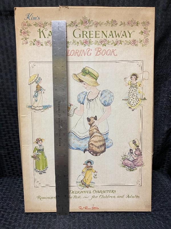 Kate Greenaway coloring book. Large, about 19"x12.5". Comes in box. Uncolored pages. Victorian images.