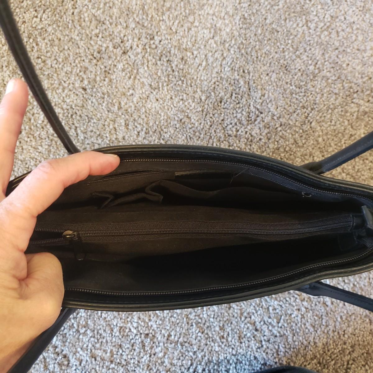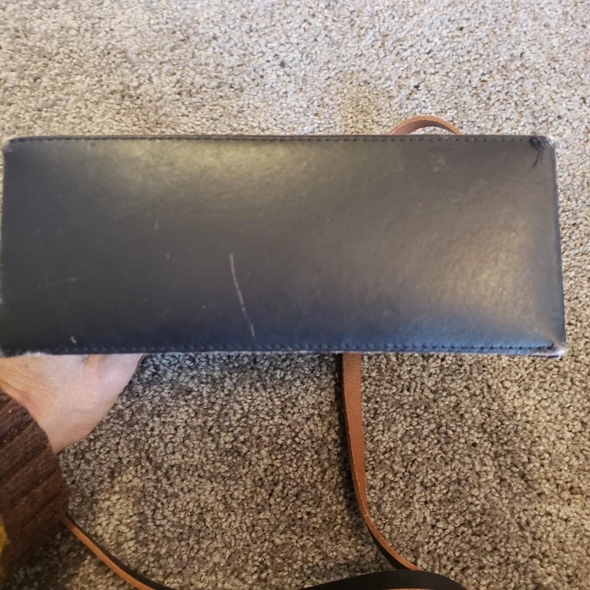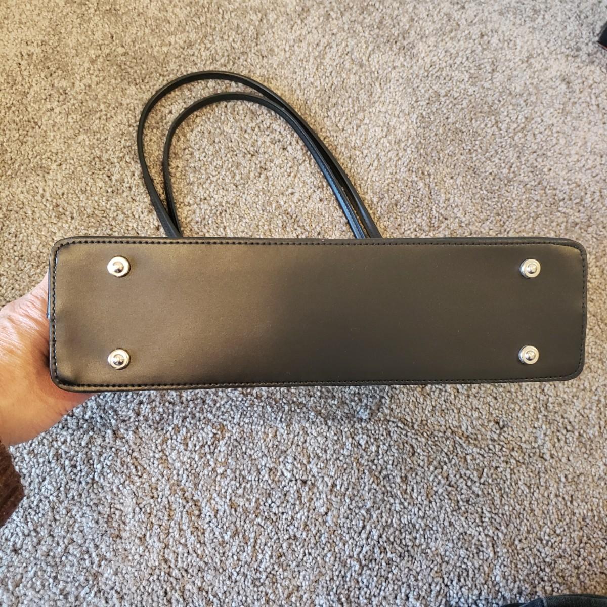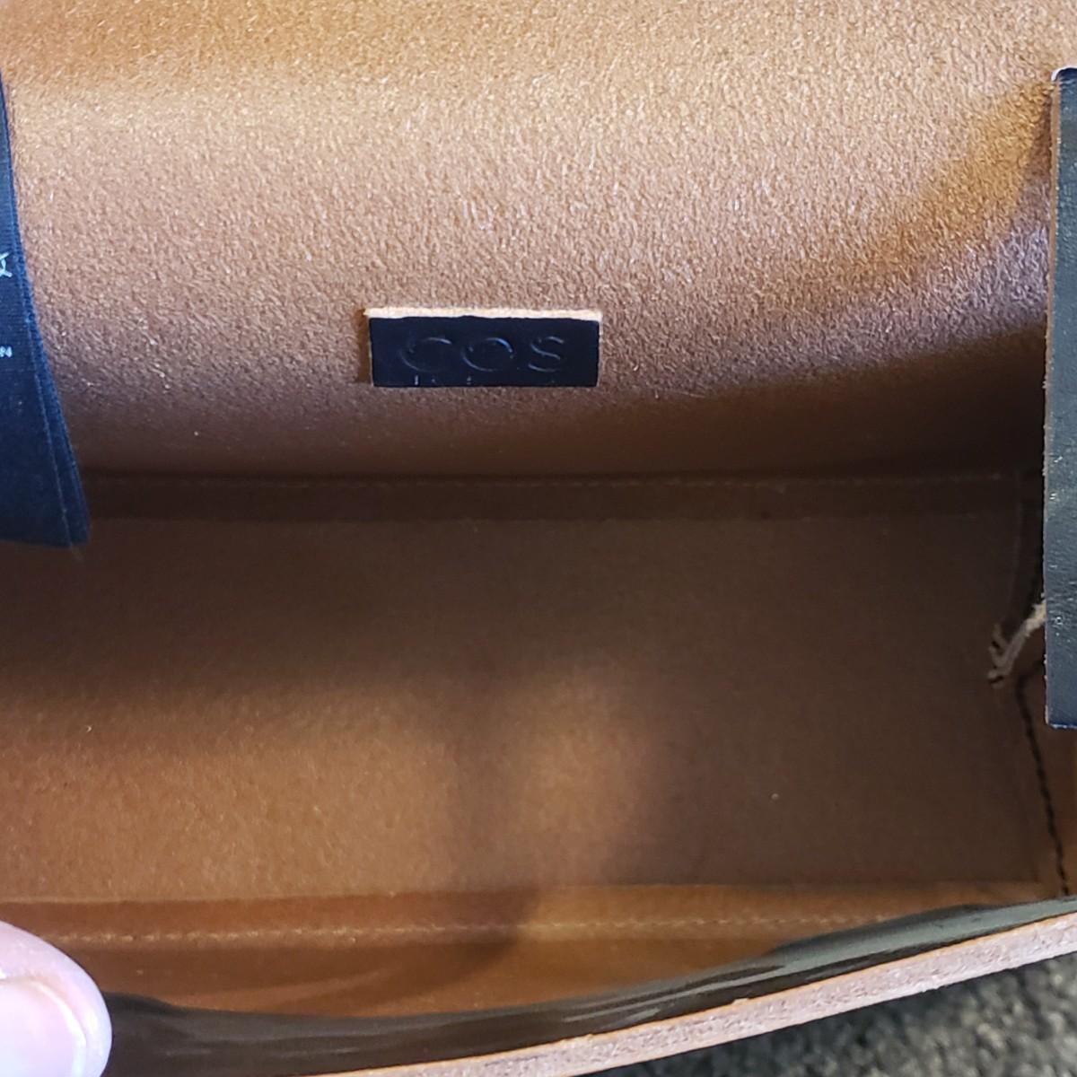 This two piece lot has a Kate Spade and COS black leather purses. The Kate Spade purse measures 12" x 3" x 7"H. The height with the handle is 16". There are two side pockets with a zipper pocket in the middle. The COS black and tan leather purse has an adjustable strap, see picture. There is some wear on the corners, see pictures.