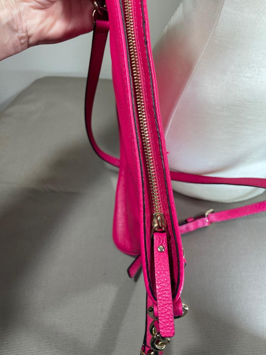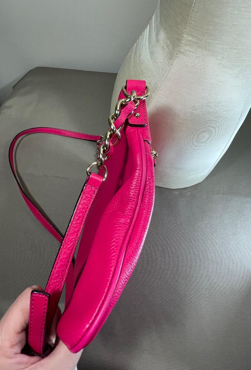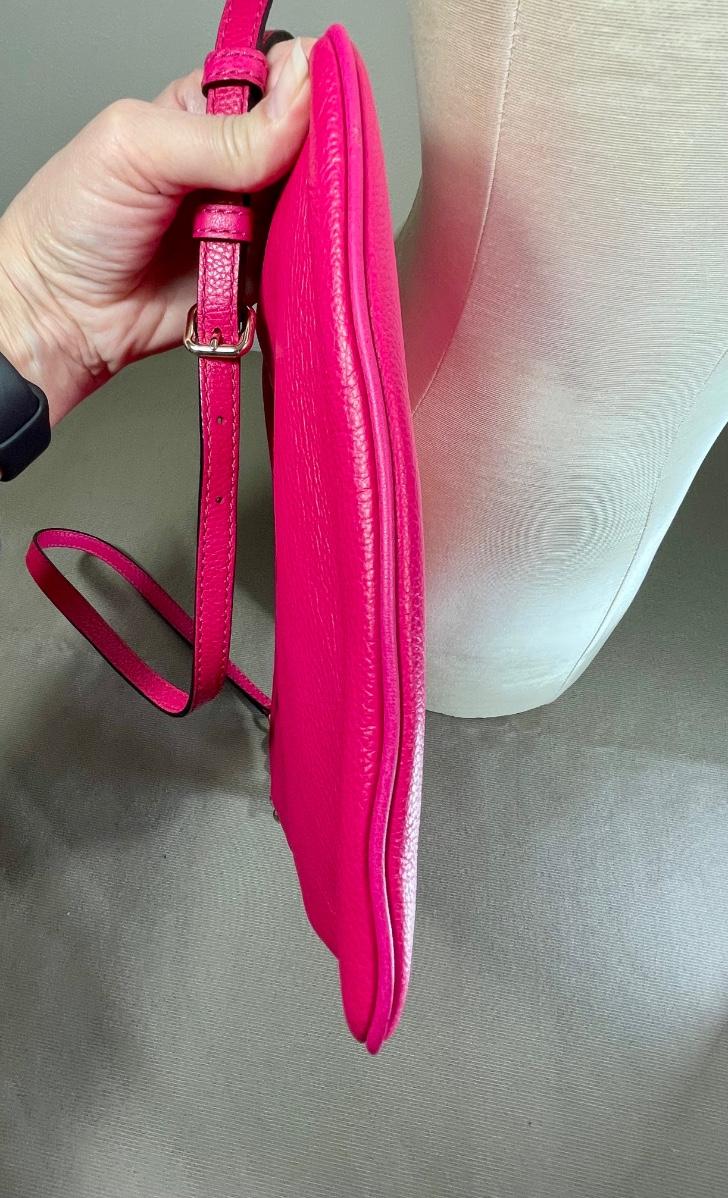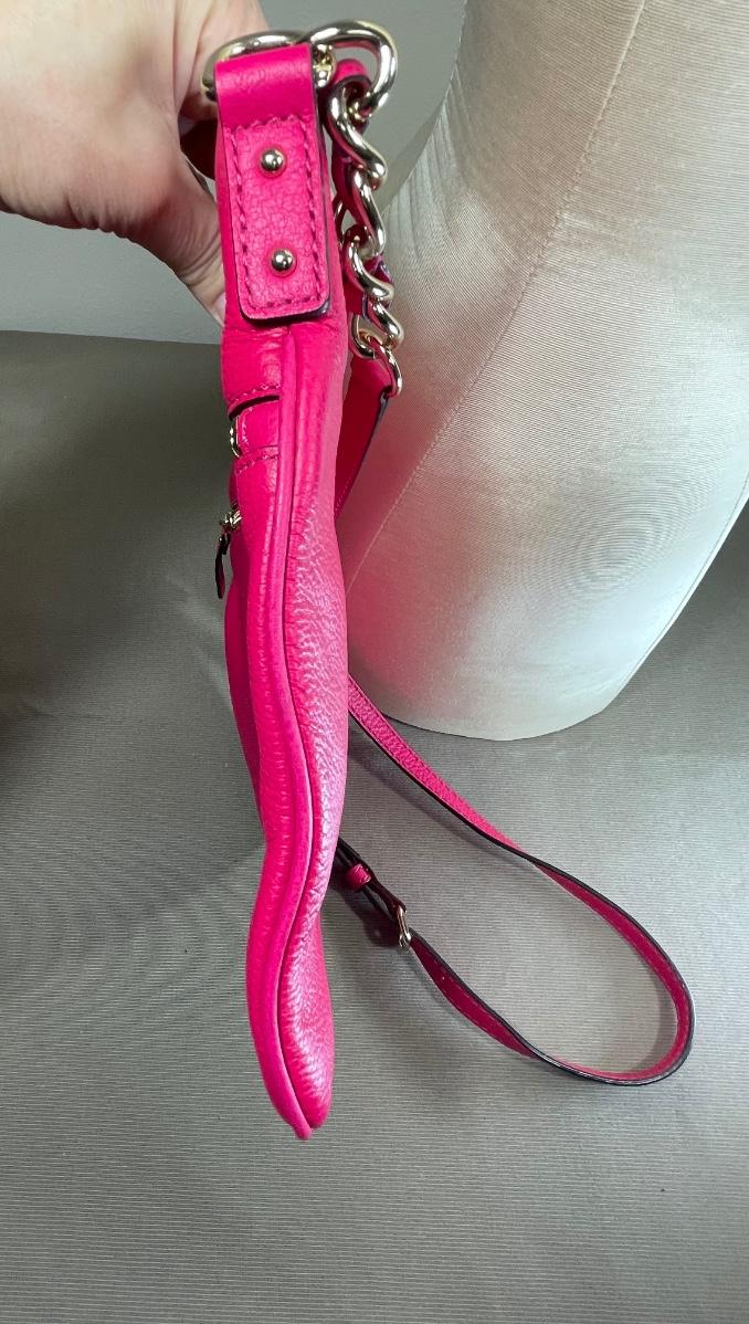 Hot pink leather in excellent, clean condition. Measures 10” by 11”