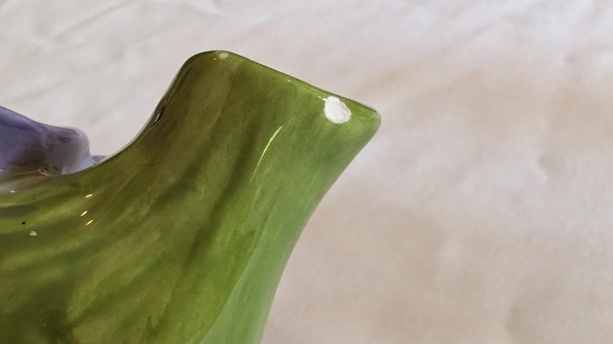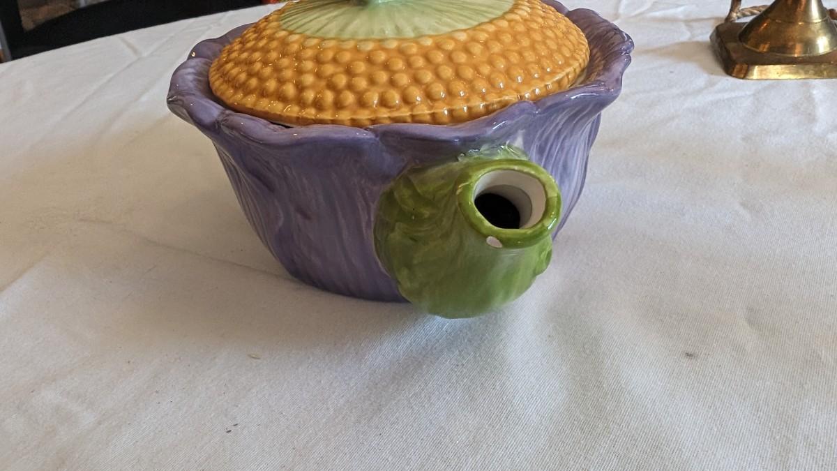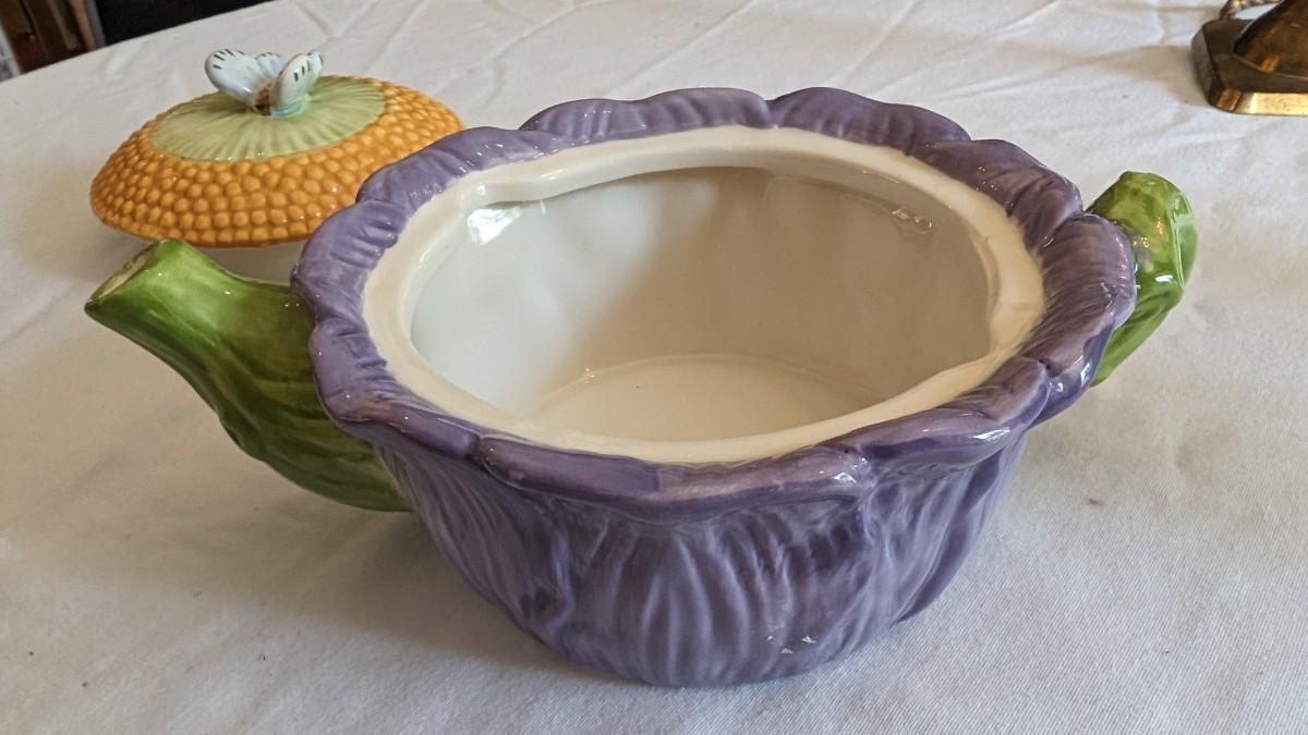 Kate Williams Flower Teapot Purple Butterfly Handle Chip Spout
