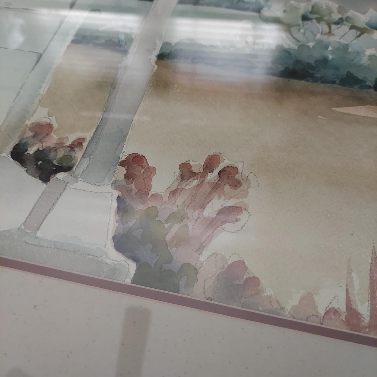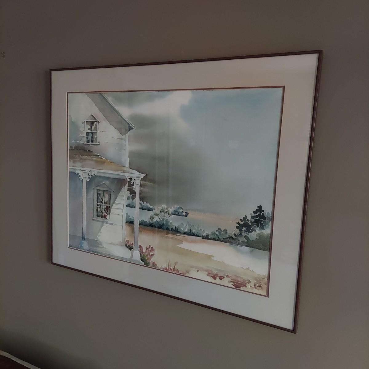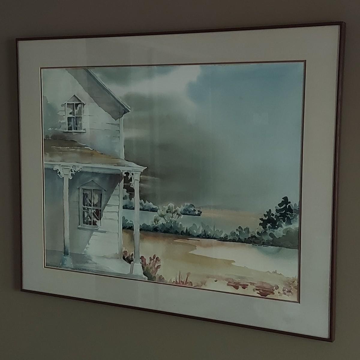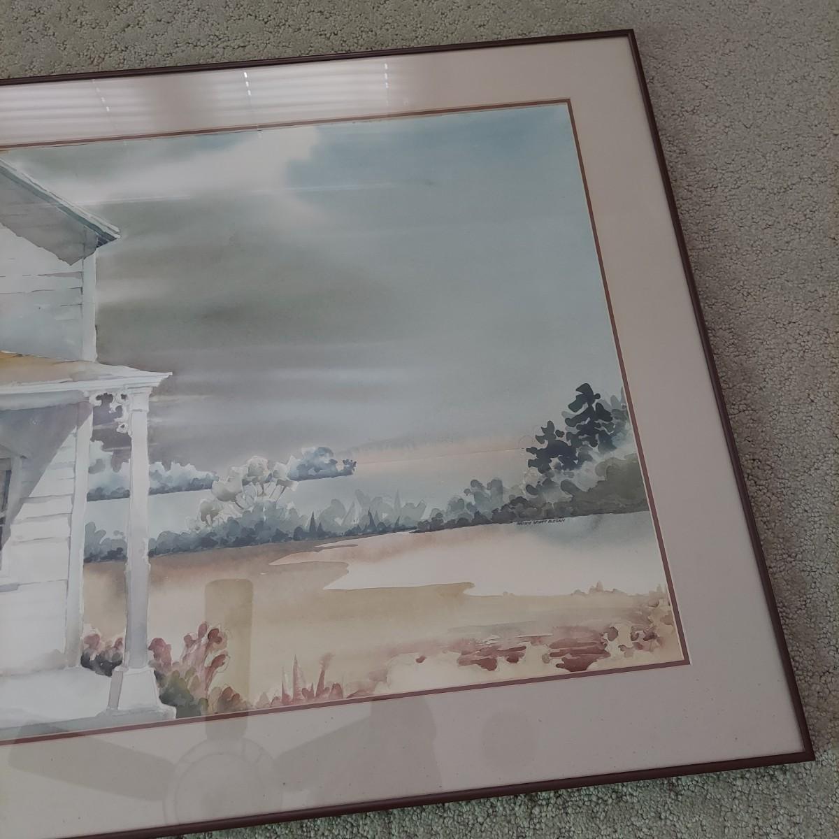 Original watercolor landscape by Kathie Wyatt Blozan. Framed and doubled matted. Measures approximately 35" x 28"H. Shipping available. Shipping certain items can be costly. We suggest contacting our preferred local shipping provider, Postage Express, with dimensions and getting an estimate before bidding: (828) 670-5501 or postageexpress@yahoo.com.