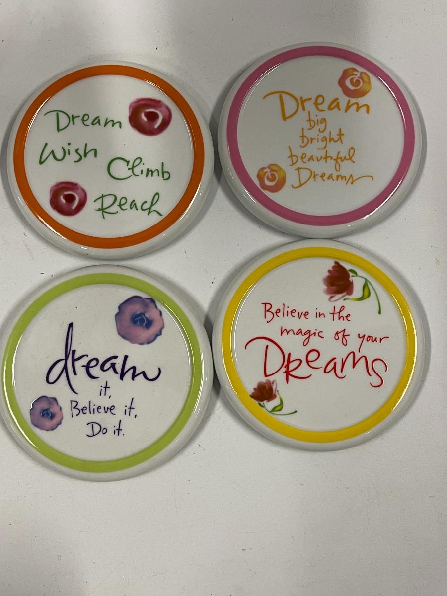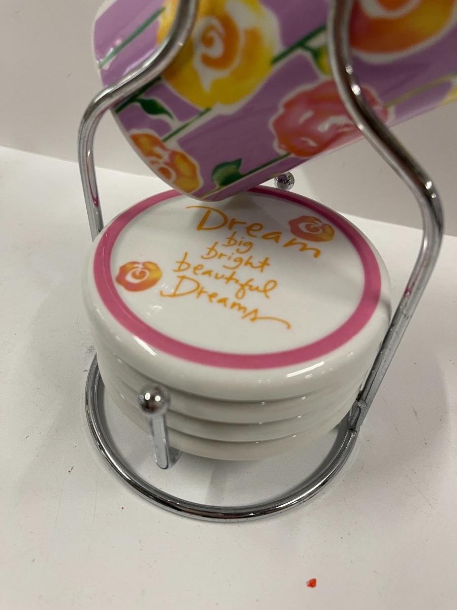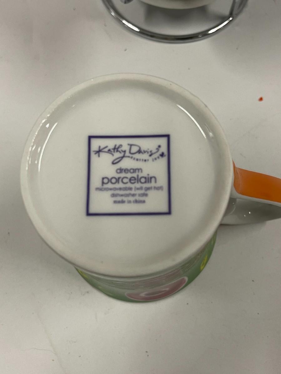 Kathy Davis Dream Porcelain Set of Coffee/Tea Cups with lids and Metal Caddy