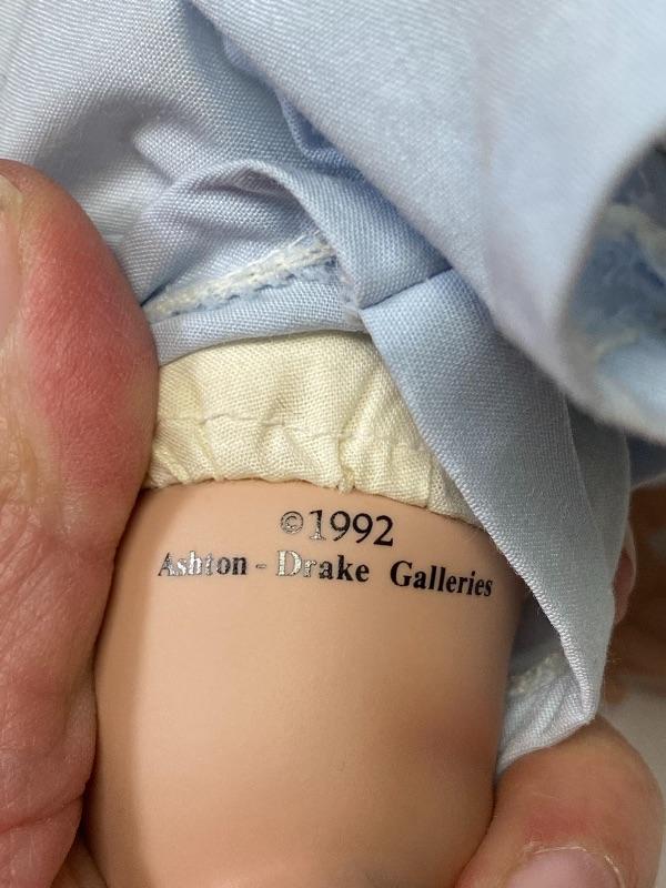 1992 Kathy Hippensteel & Ashton Drake Galleries "Tickles" 12" porcelain doll. Part of the Joy of Summer Collection. Numbered A4467L. Missing his hat.