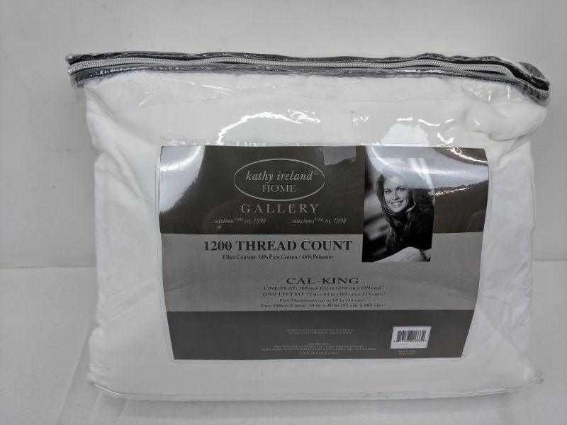Kathy Ireland Home 1200 Thread Count Sheet Set, Cal King, White - New