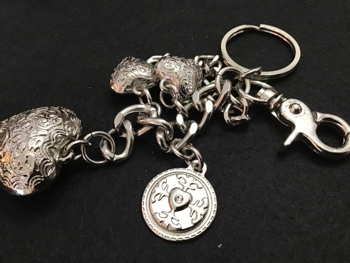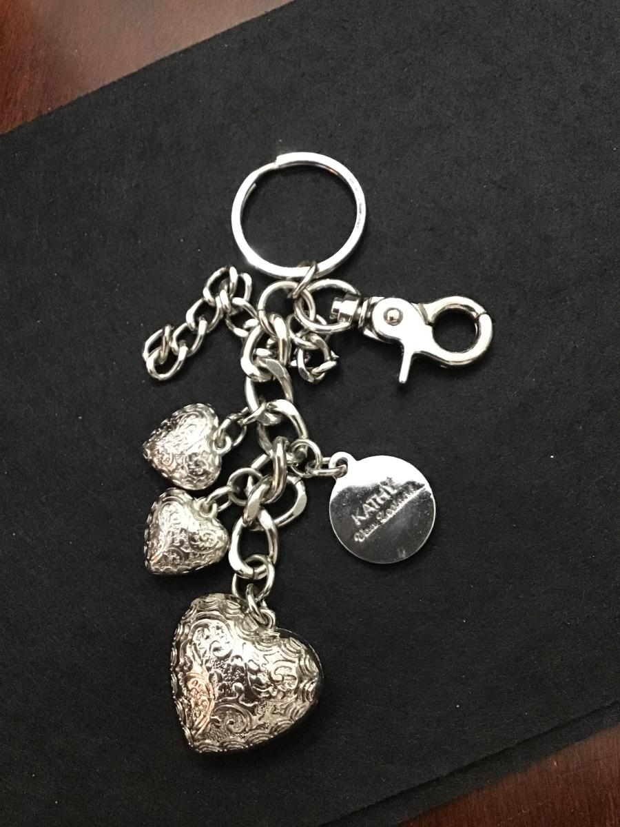 Kathy Van Zeeland Silvertone Hearts keychain /Fob