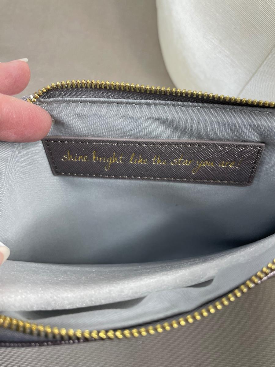 9.5 by 6.5 inches. “Shine Bright” and “Shine bright like the star you are” messages on front and interior. New with tag.