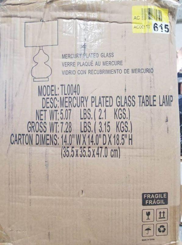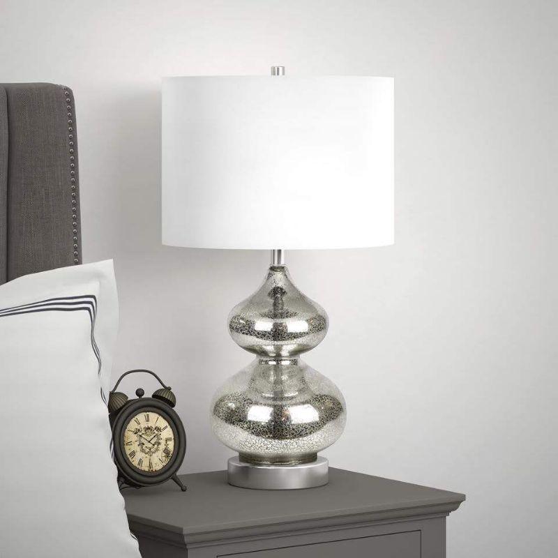 Katrin Modern Glam Double Gourd Table Lamp in Mercury Glass with Linen Shade - New