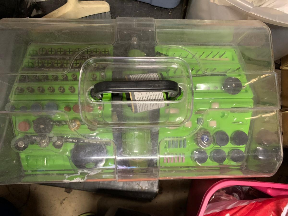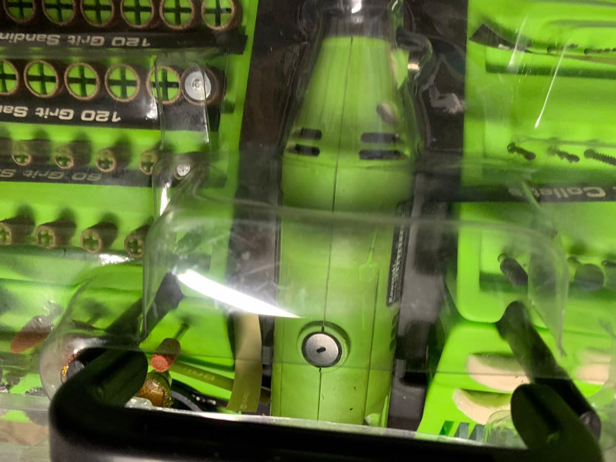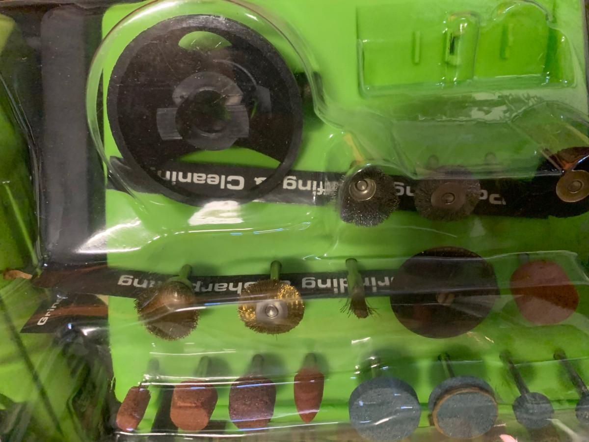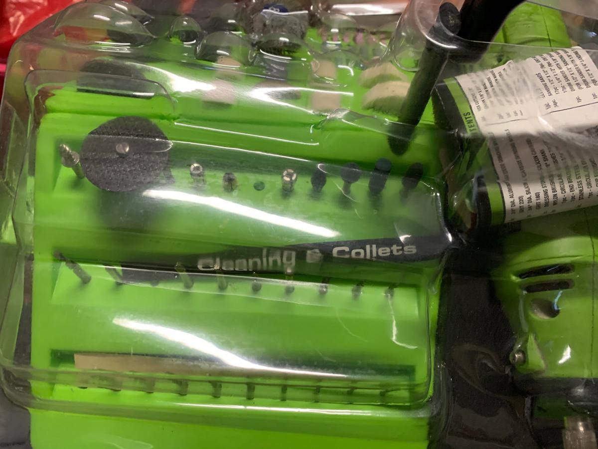 This kit has all the pieces you need for around the house or shop projects, arts and crafts,etc. , box is damaged see pic. 120V/1AMP/60Hz 8000 - 30000RPM