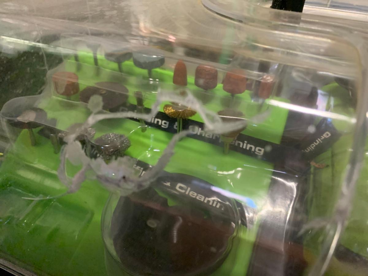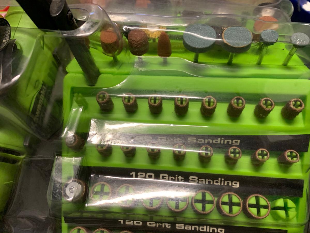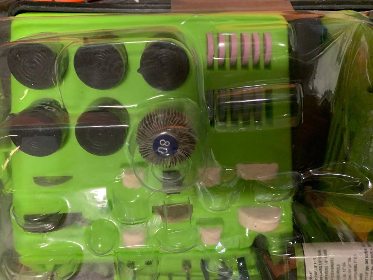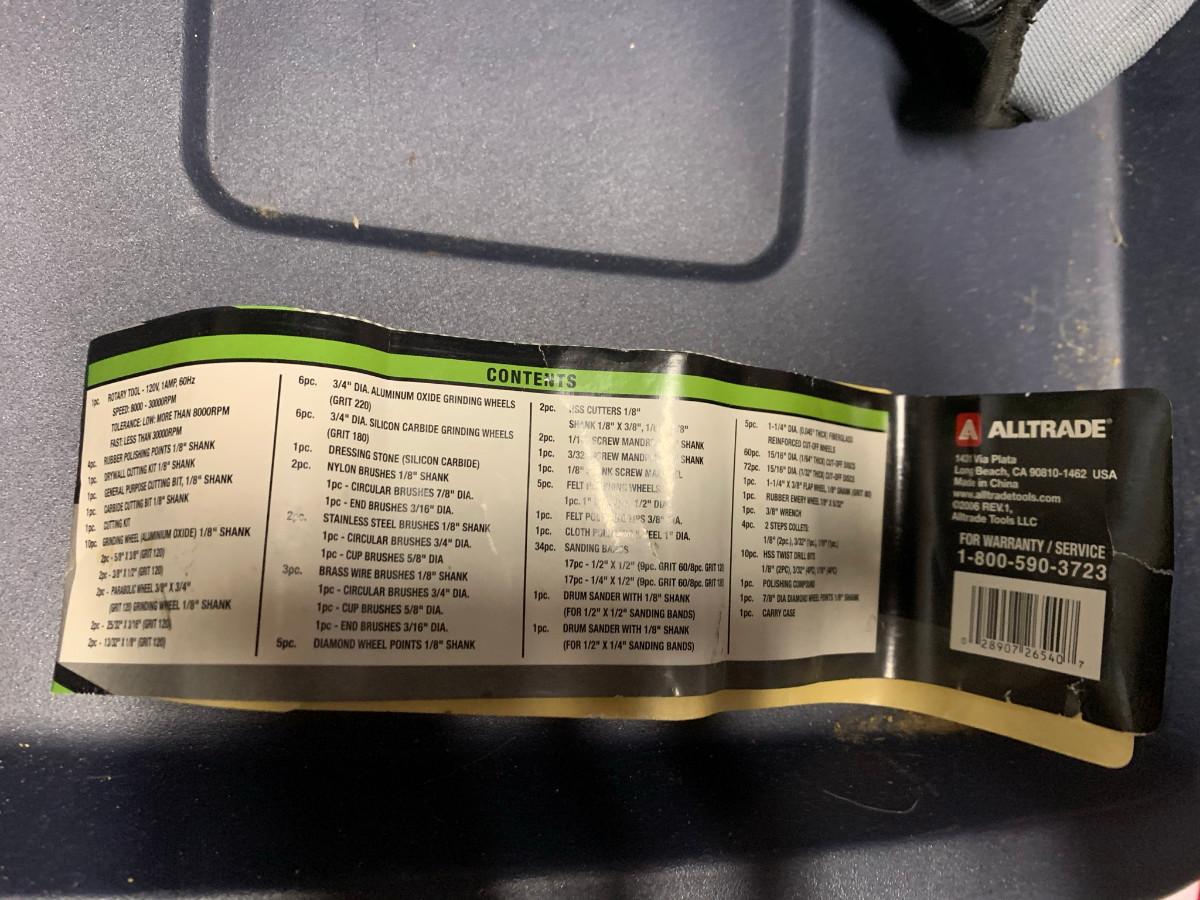 This kit has all the pieces you need for around the house or shop projects, arts and crafts,etc. , box is damaged see pic. 120V/1AMP/60Hz 8000 - 30000RPM