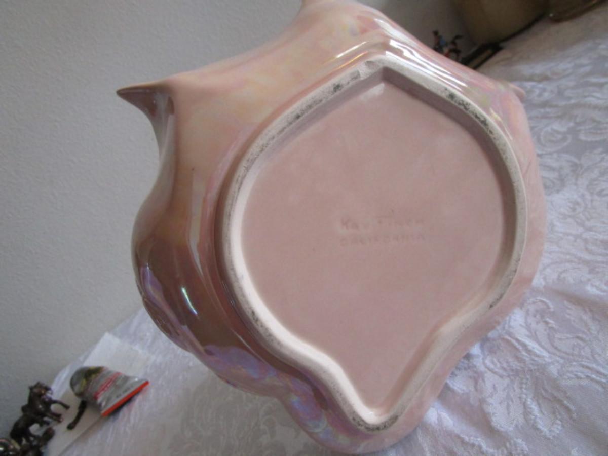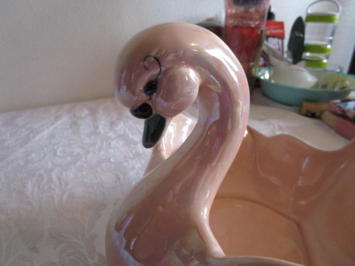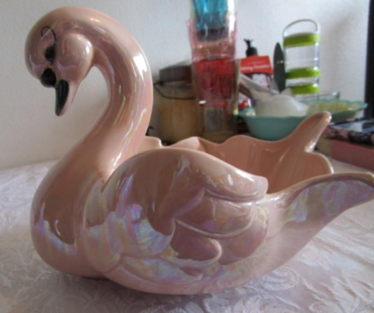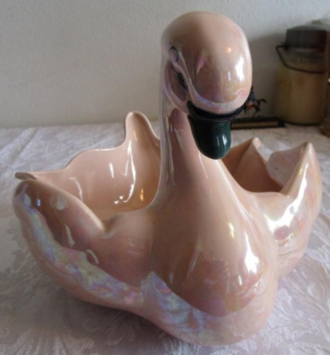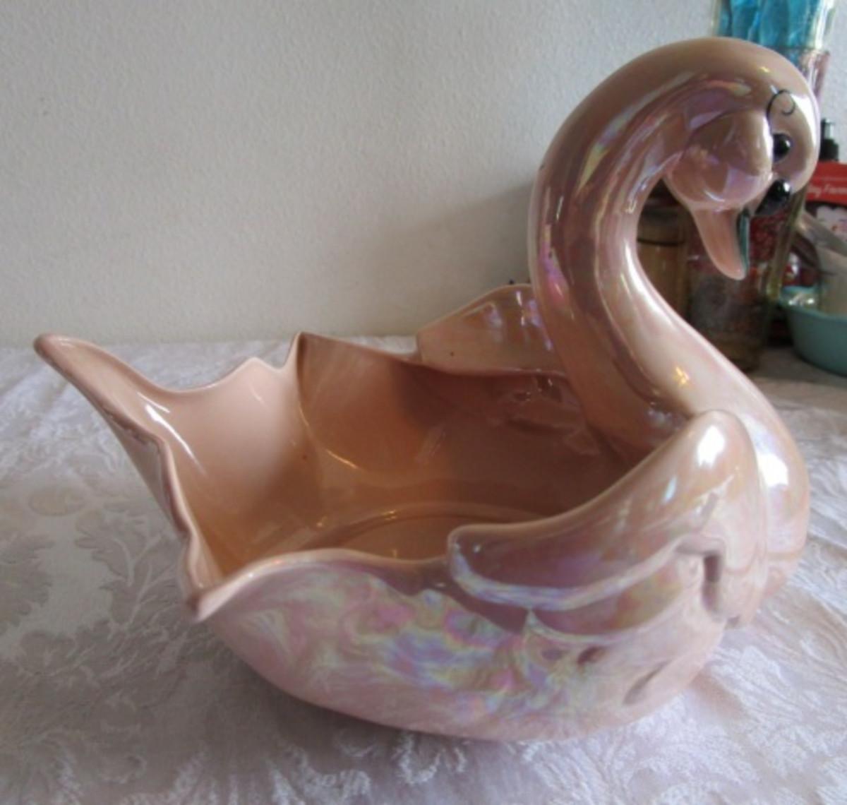 Kay Finch, CA Ceramic Irridescent Swan decorative dish