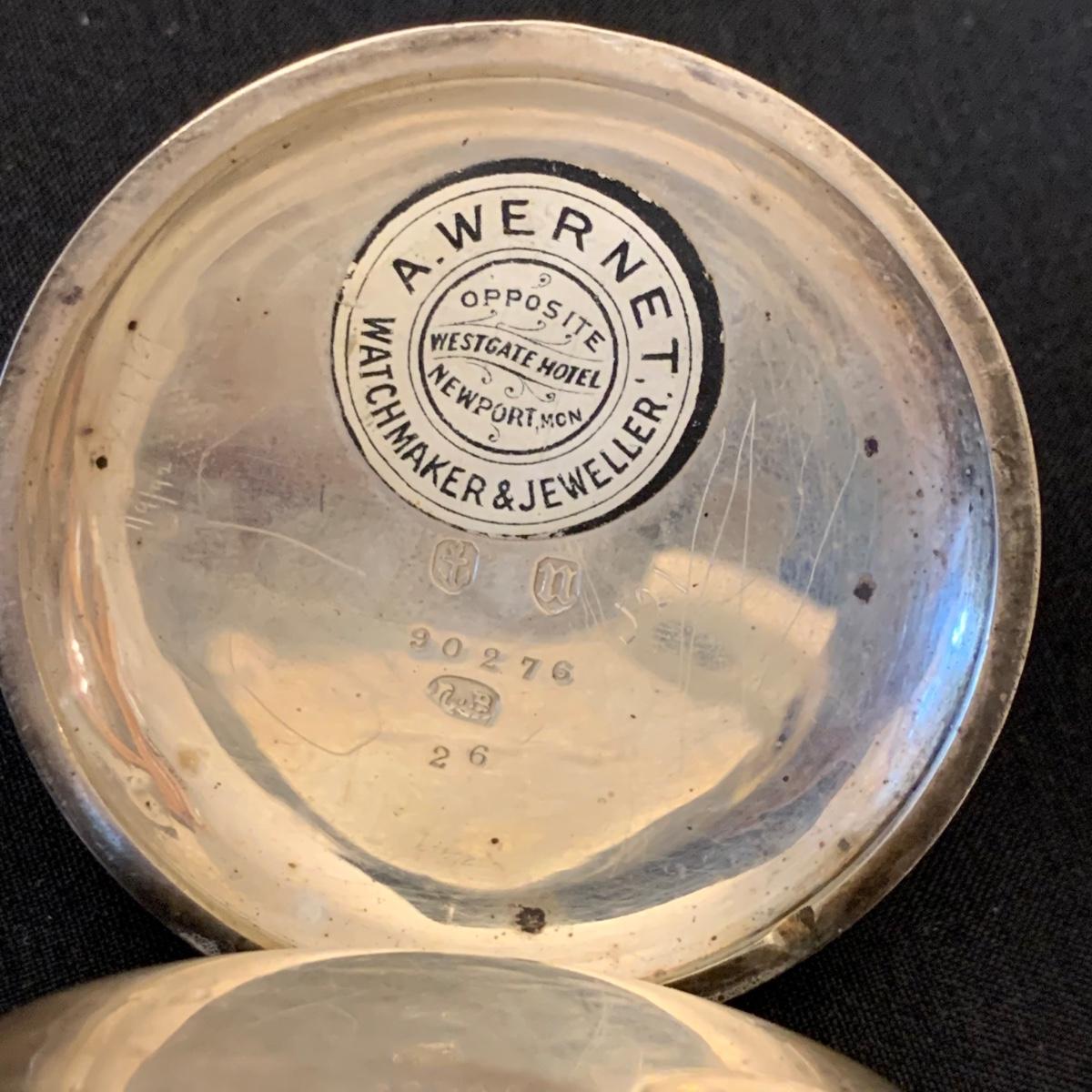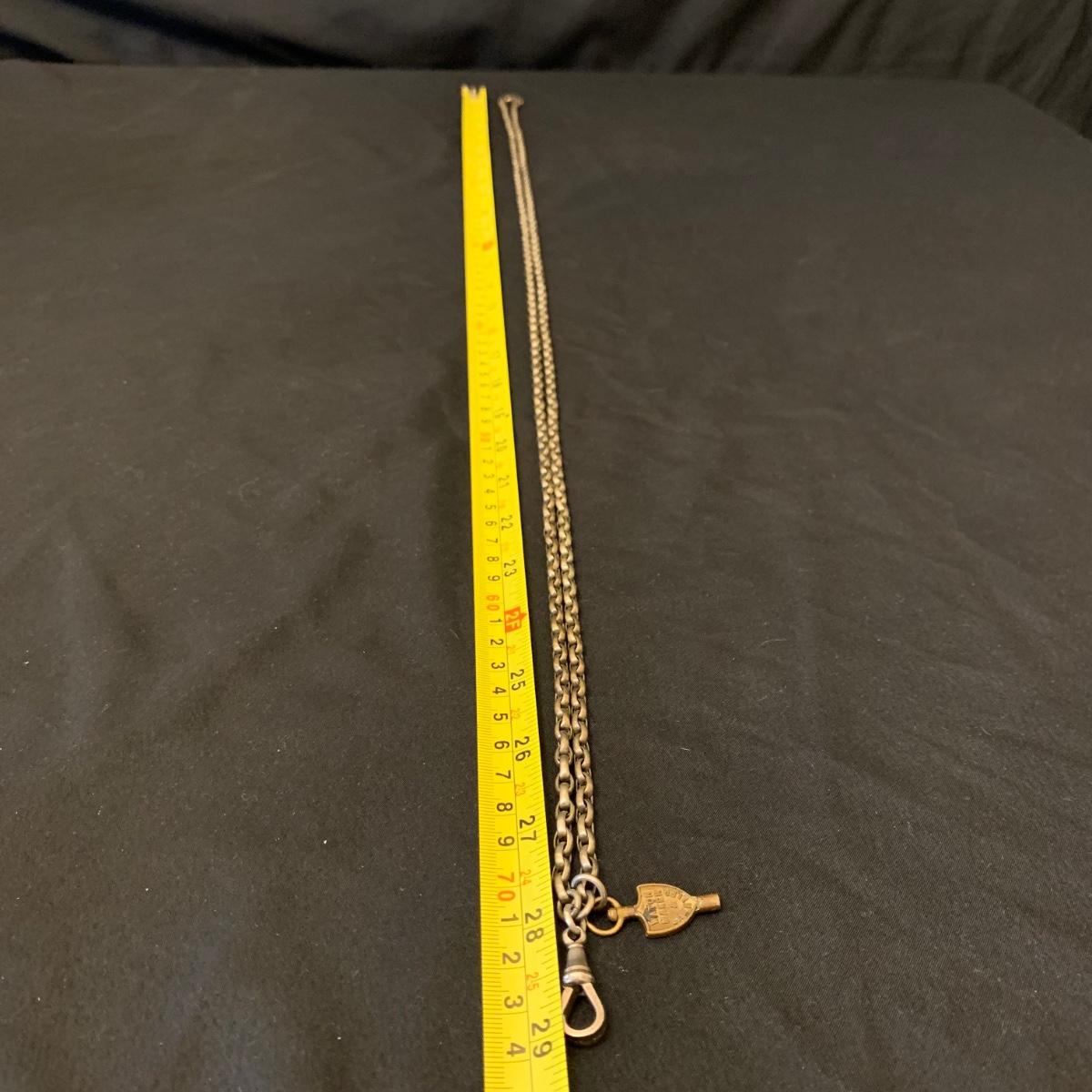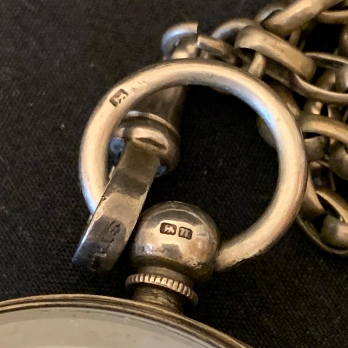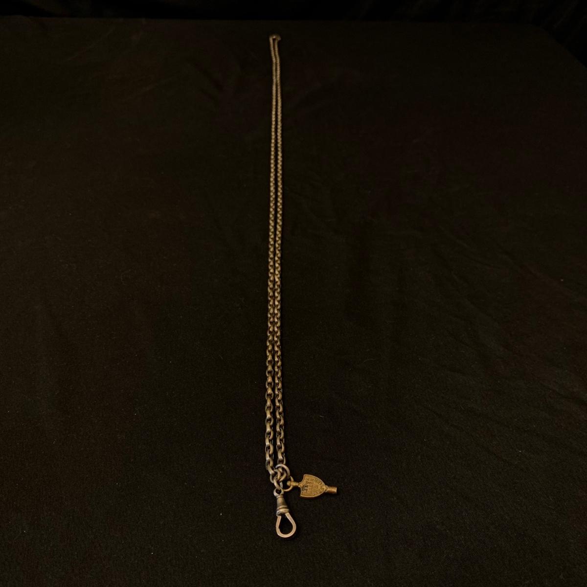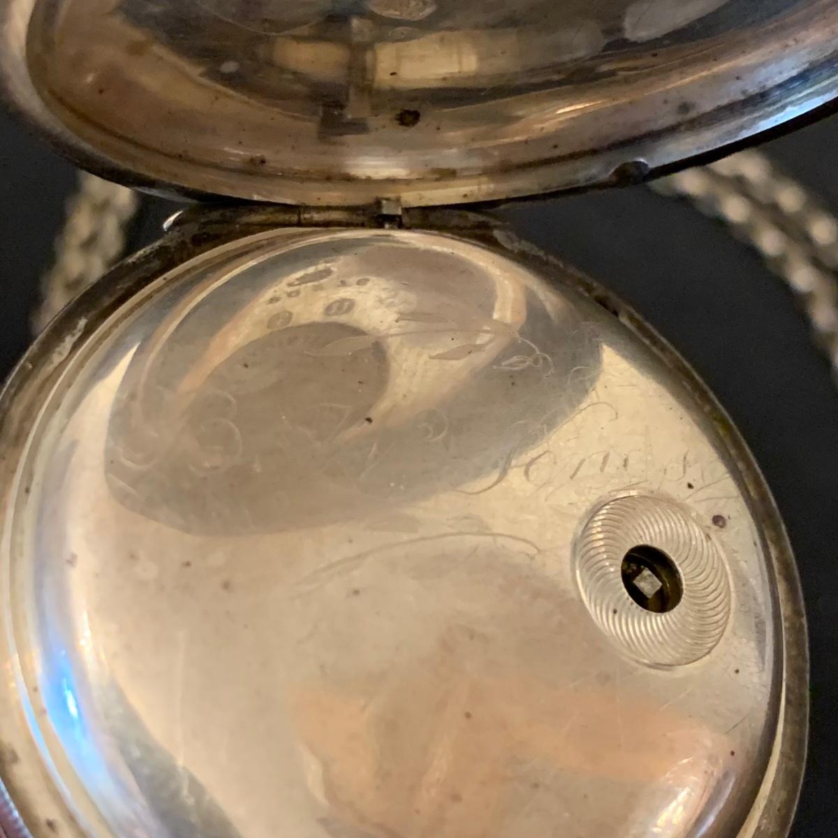 Kay Jones & Co. Worcester pocket watch. Watch is not currently working; it’s possible the key has broken off as when you put in the winding attachment it feels too loose to turn to wind. Comes with a chain that has a winding key marked “˜L. Winterhalter Blaenavon Watch Maker & Jeweller’. Chain measures approximately 58”. Pocket watch is 2”D. See photos for all markings. The inner back case is delicately engraved with “˜B. W. Jones’. Rear plate covering watch mechanics does not appear to be removed easily. Shipping available.