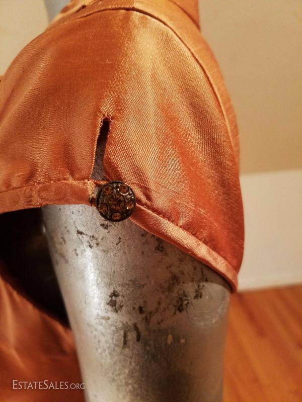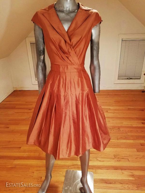A beauty by famous Kay Unger New York 100% silk bronze dress with gorgeous details and tie at back.
