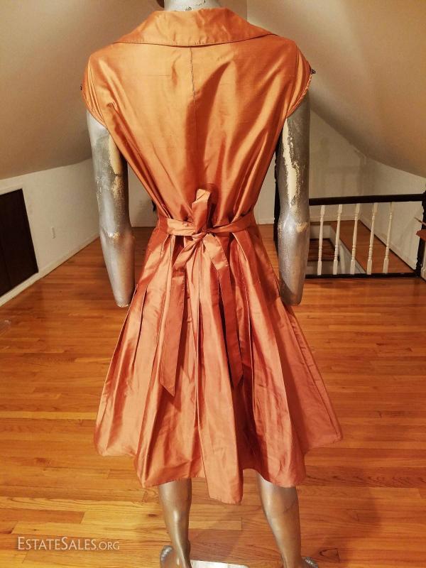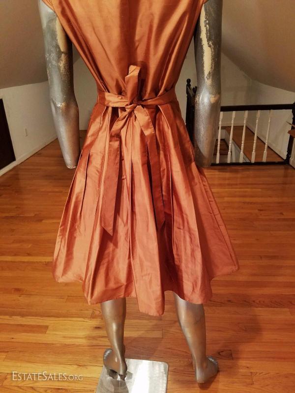 A beauty by famous Kay Unger New York 100% silk bronze dress with gorgeous details and tie at back.