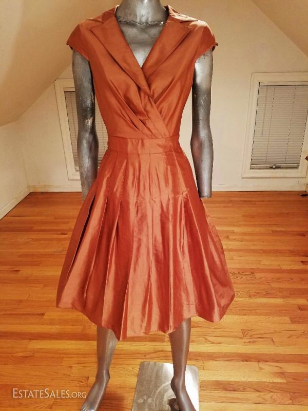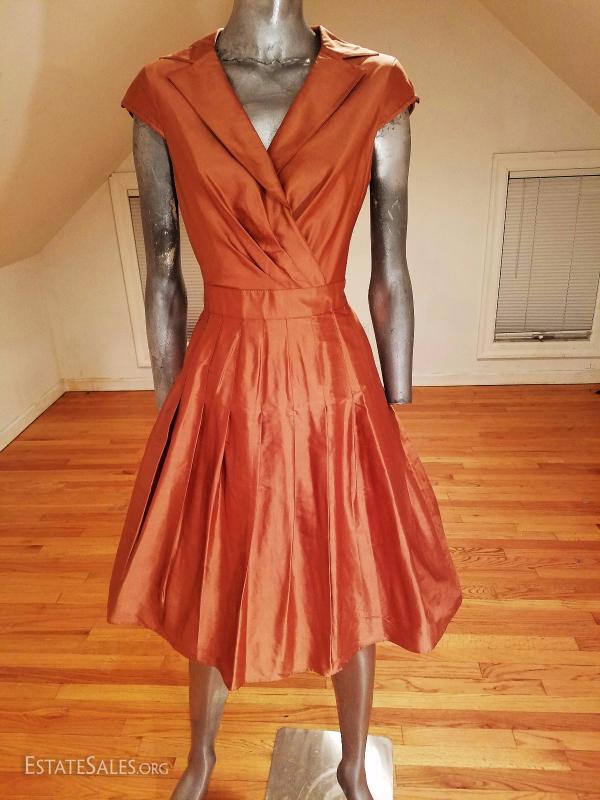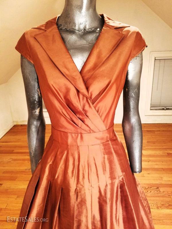 A beauty by famous Kay Unger New York 100% silk bronze dress with gorgeous details and tie at back.