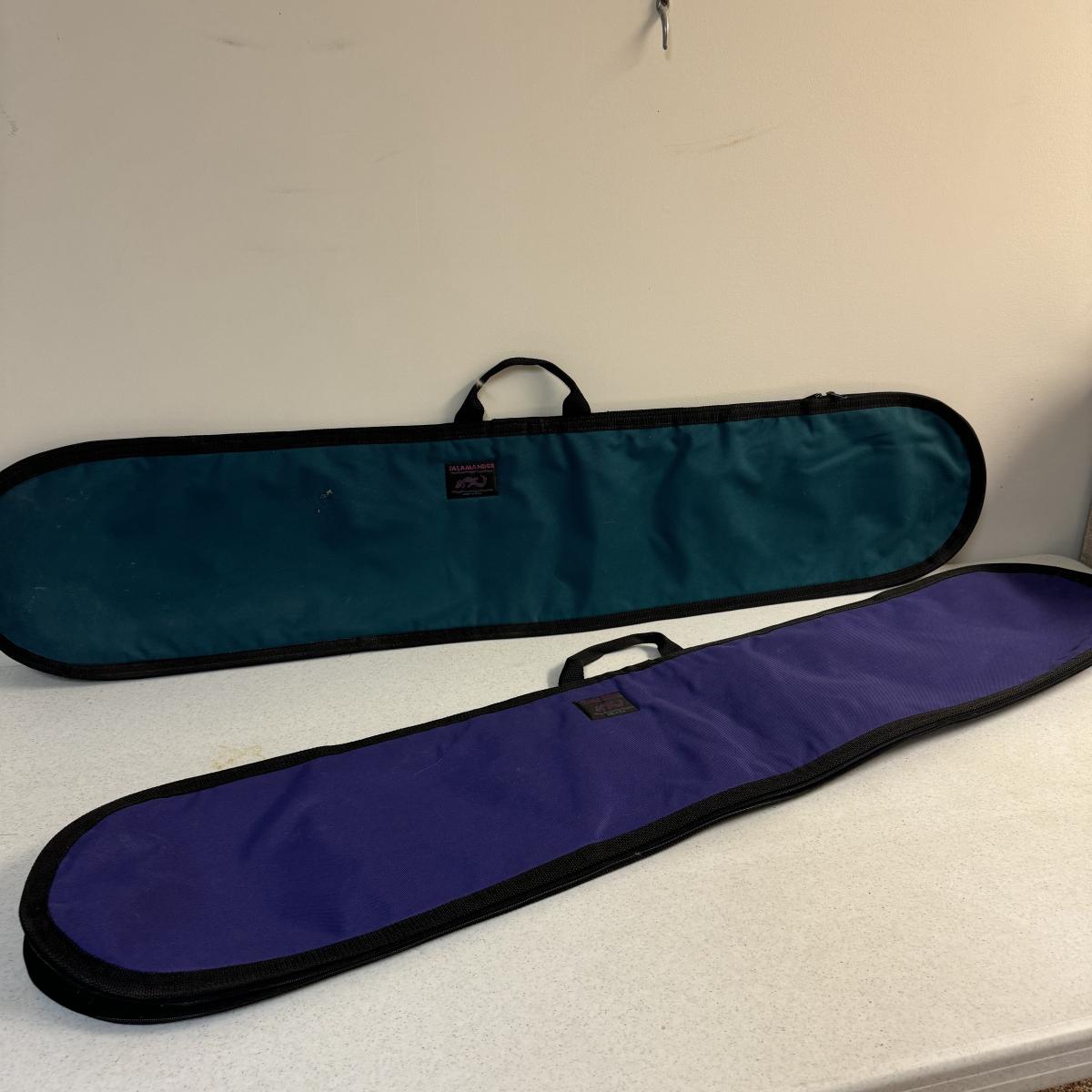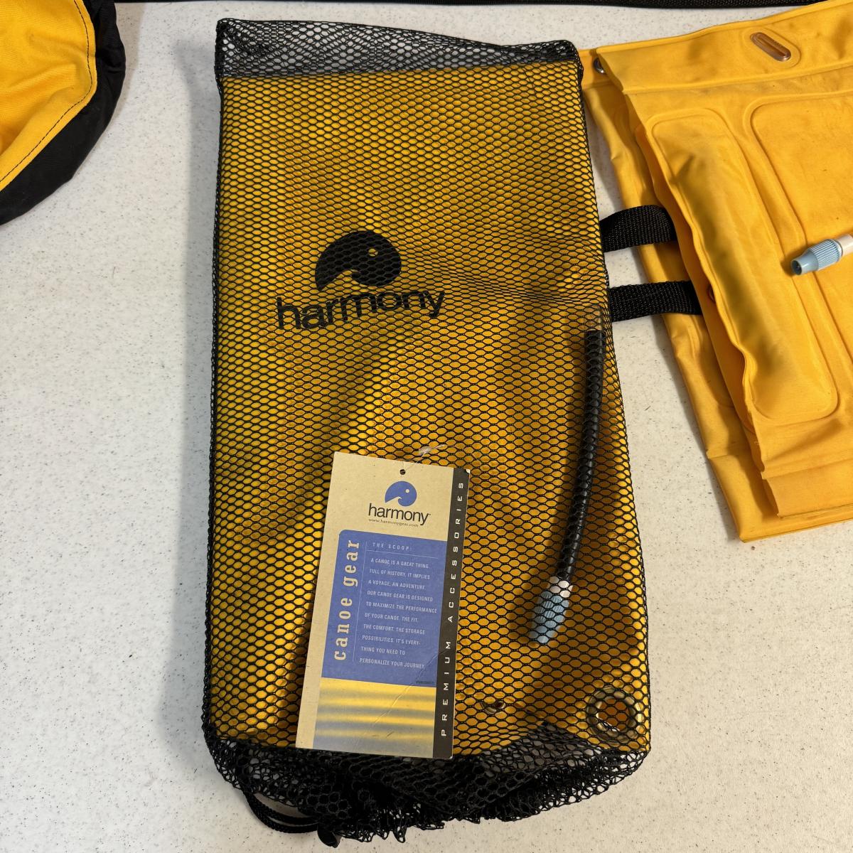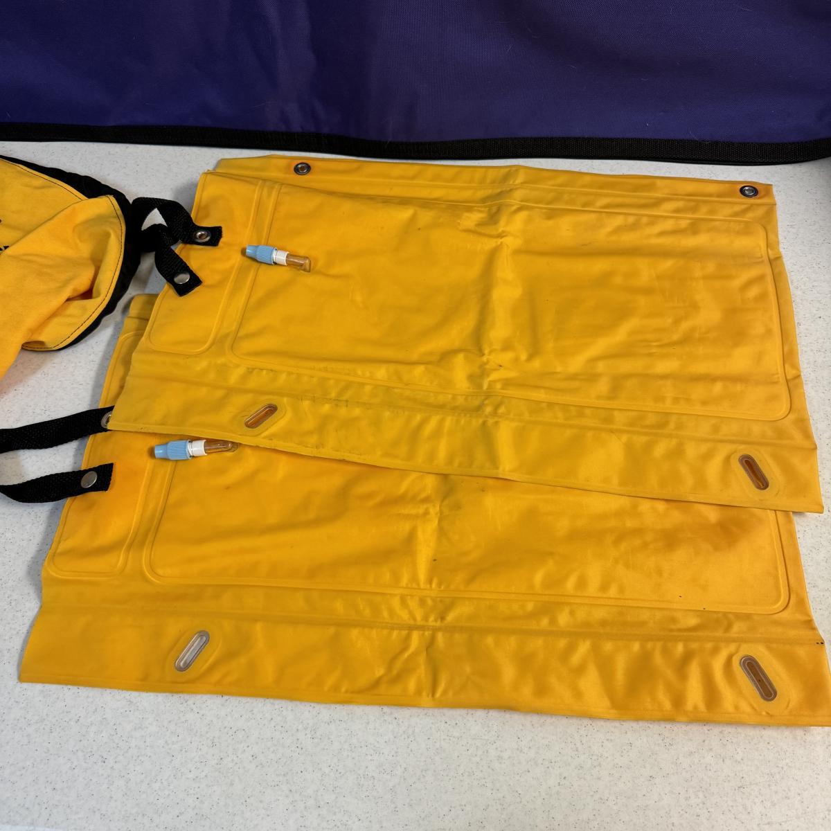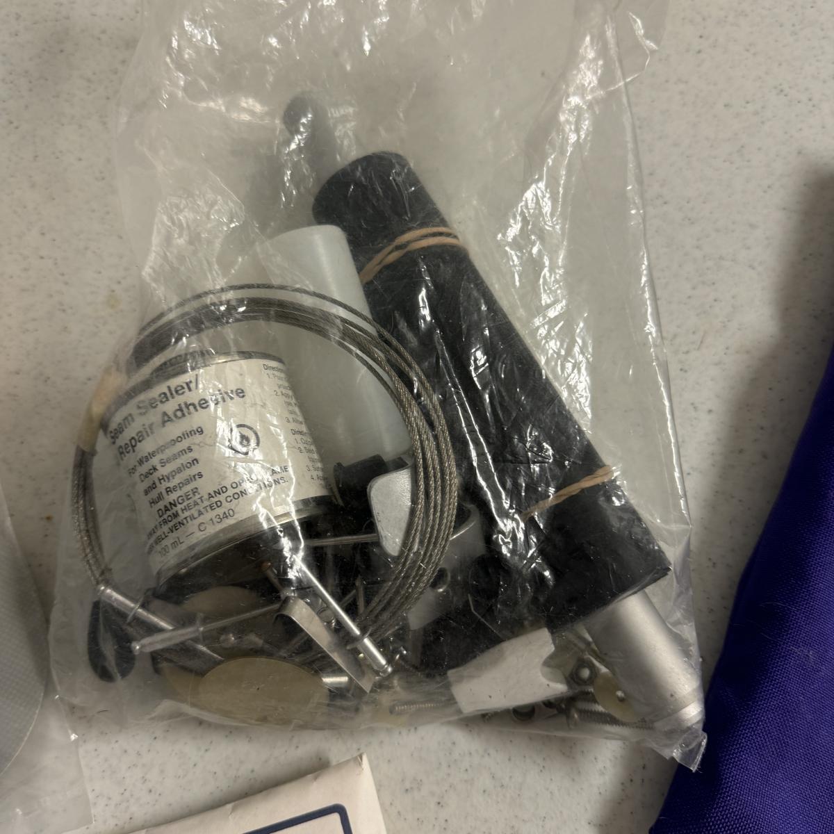 You’ll find two paddle carrying cases by Salamander that measure 50” x 11” and three Float end bags (for safety when capsized). Two bags are by Duo-Float and one is new in bag and is by Harmony. Lot also includes a Perception dura-cover and two Lasso security cables (to lock up two kayaks) with key and storage bag. Lastly there are some repair kit accessories as well as two new Dagger large D Rings. Shipping available.