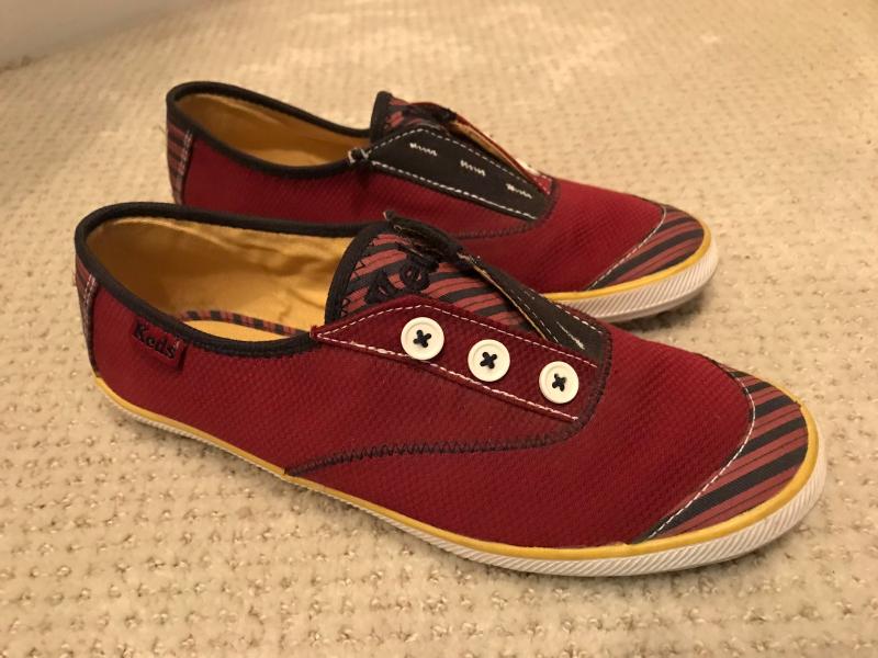 Size 7 1/2 Burgundy and black canvas. Great condition