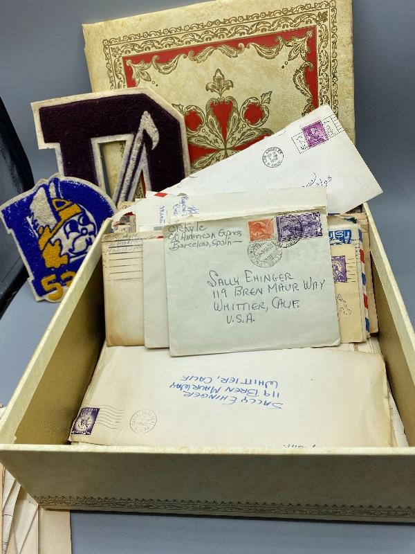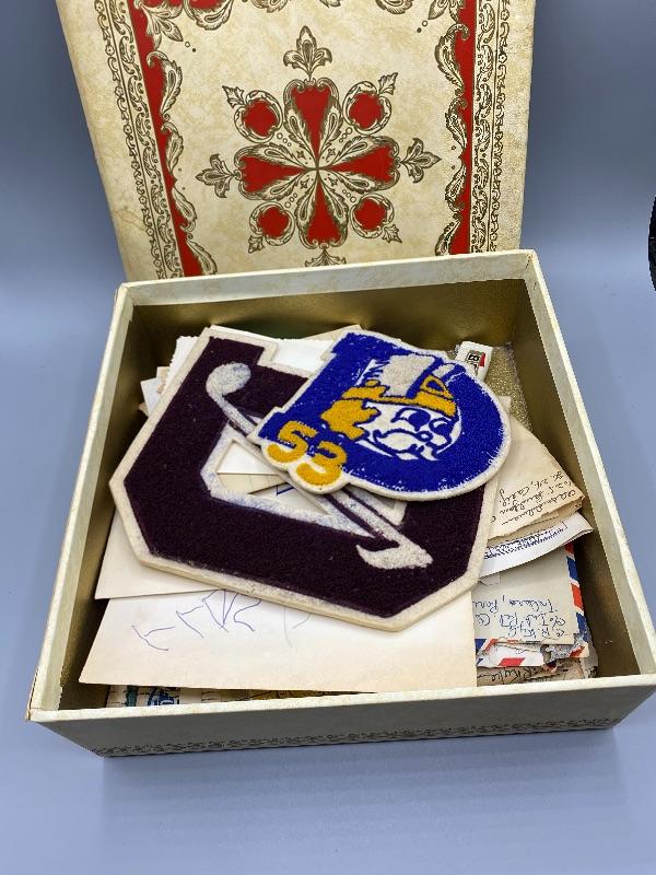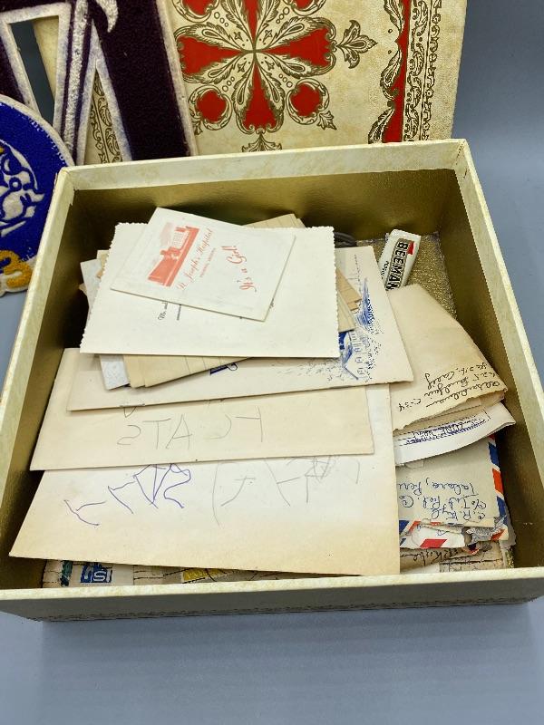 Vintage keepsake box with mementos and military love letters. Not sure what is written in them, you will have to read them to find out. Dated late 1950s early 1960s.