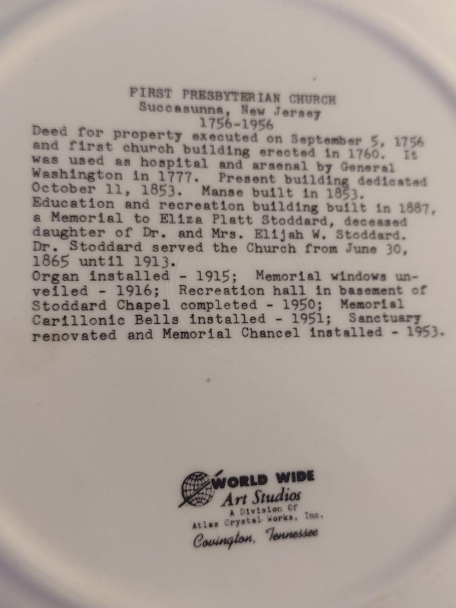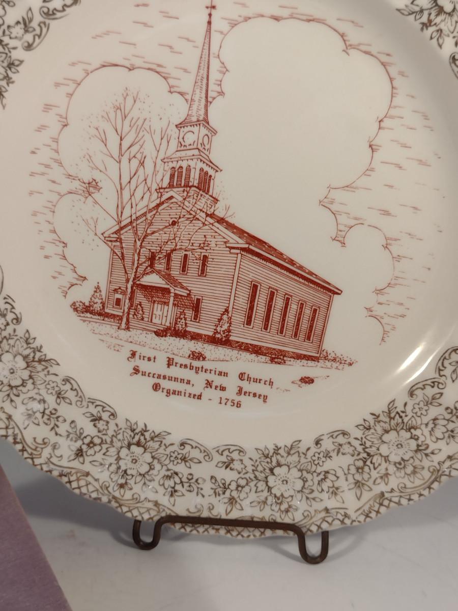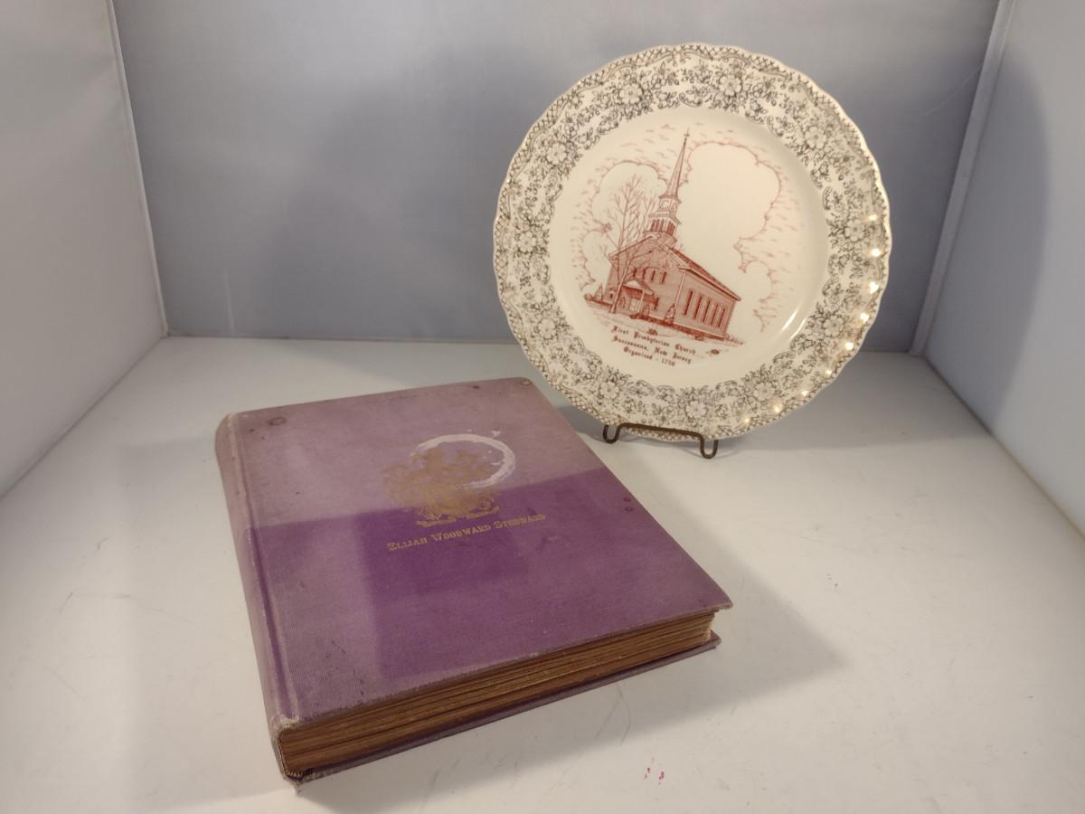 Keepsakes from First Presbyterian Church in Succasunna, NJ. Plate and book about founder, Elijah Woodward Stoddard.